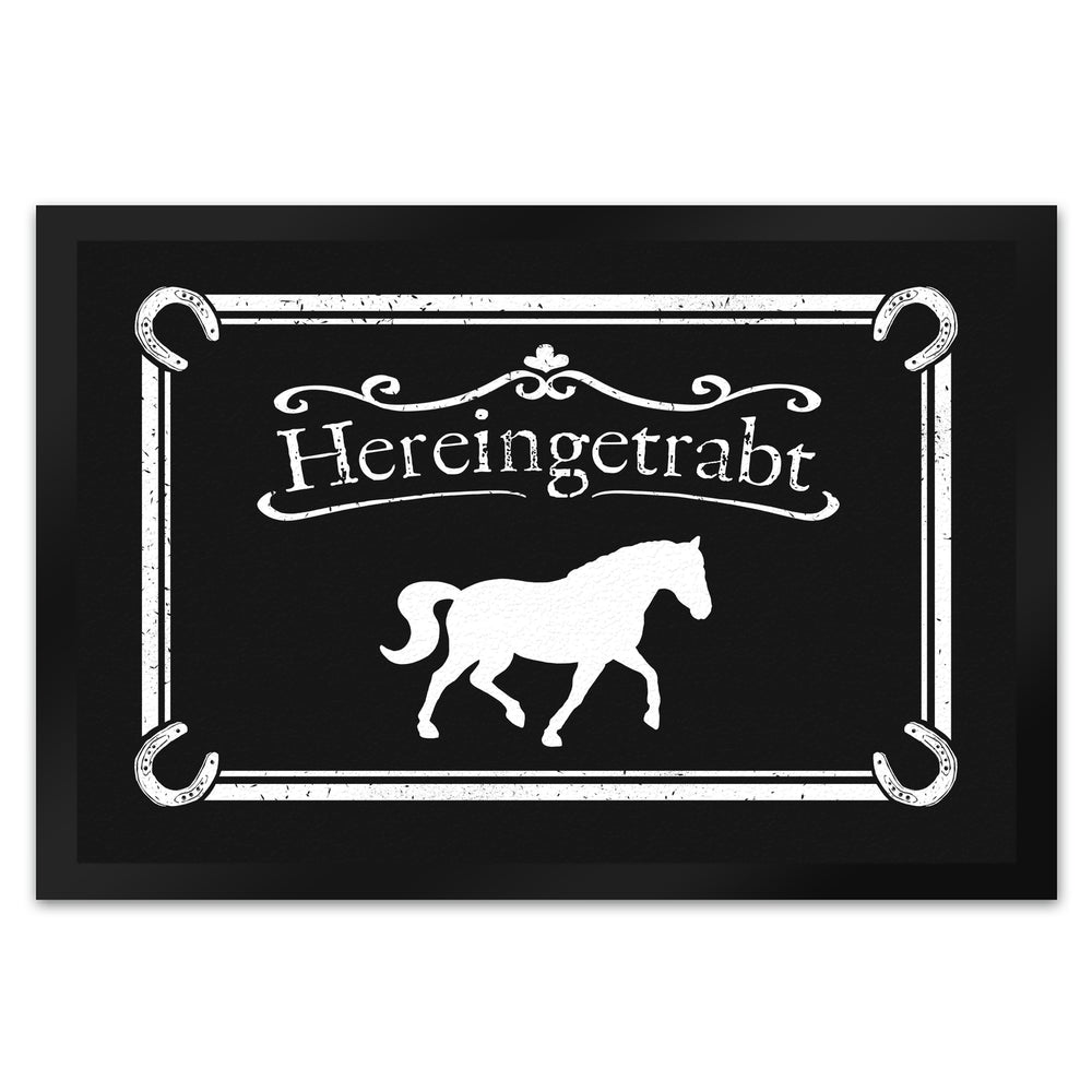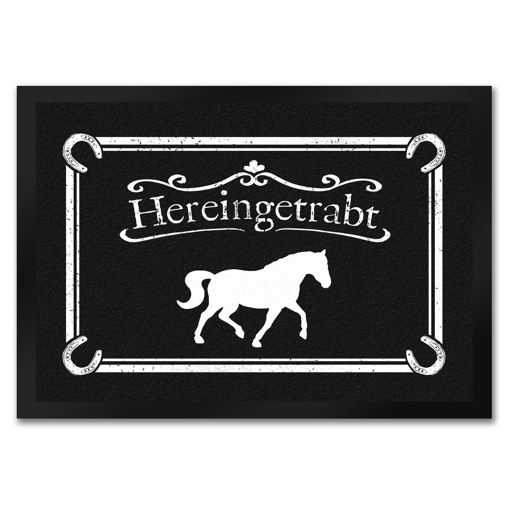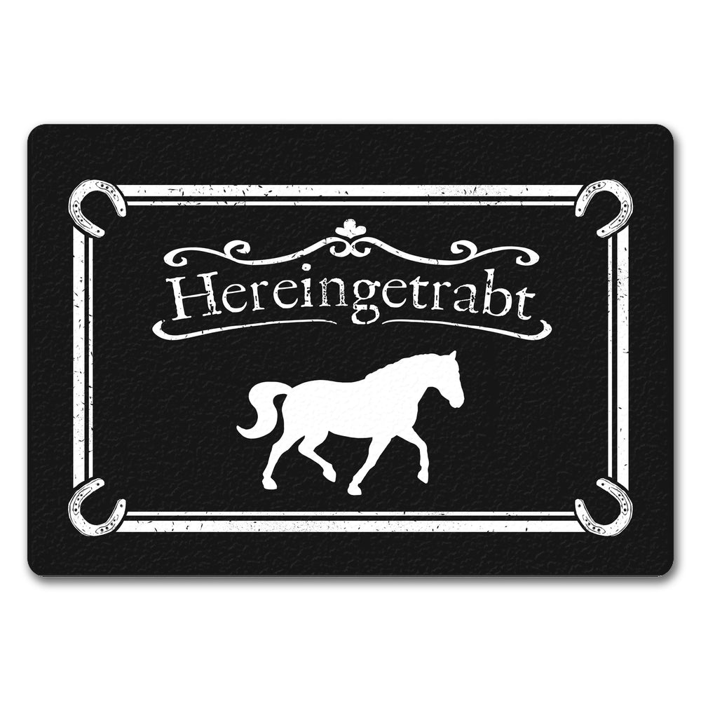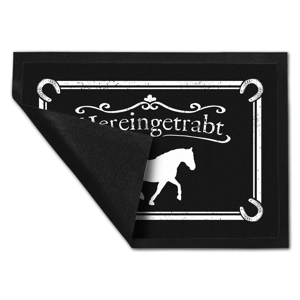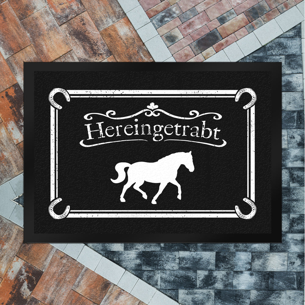 - Du liebst Pferde und hast sogar vielleicht ein Pferd im Stall, dann ist diese Fußmatte für dich das Richtige. Begrüße deinen Besuch mit einem freundlichen 'Hereingetrabt'.