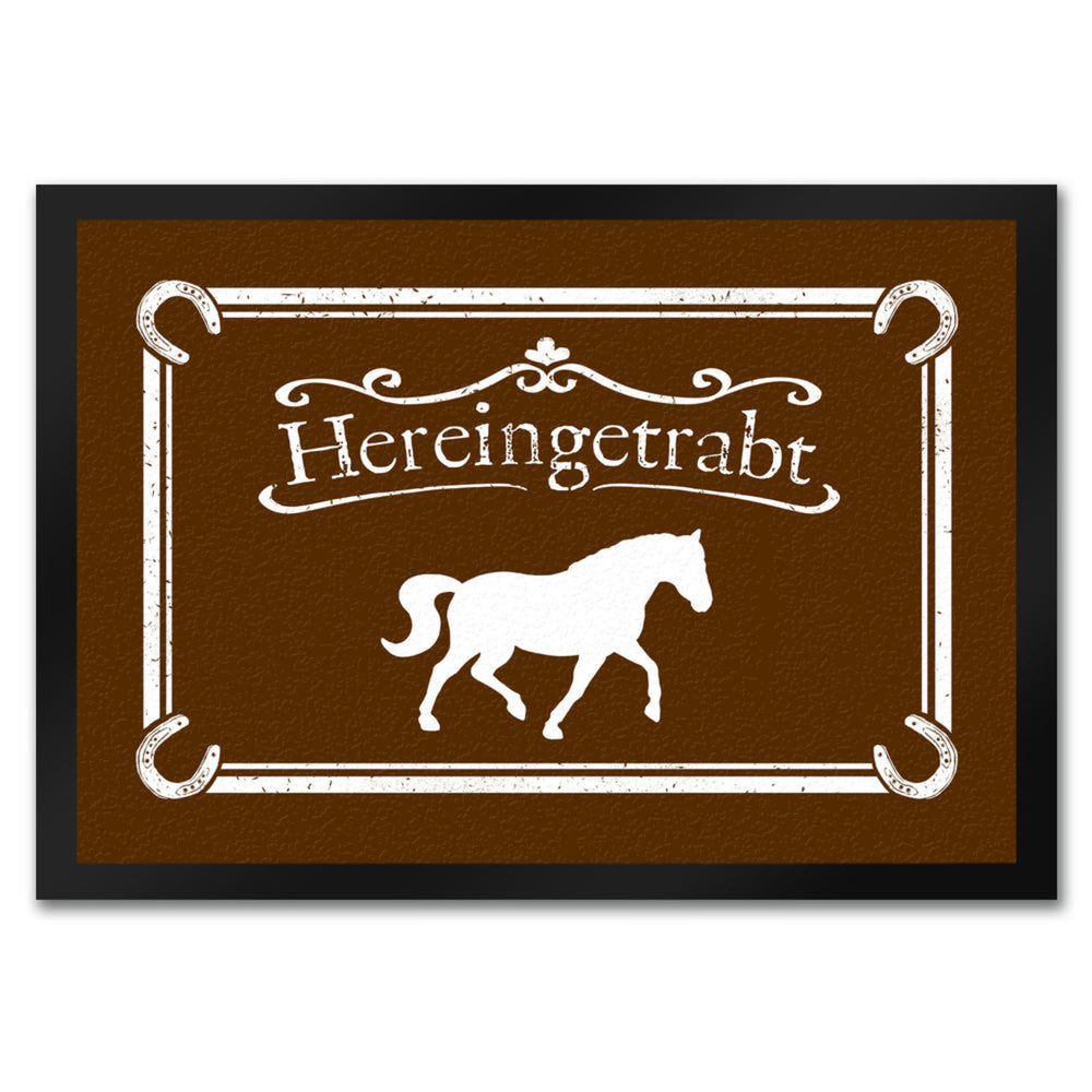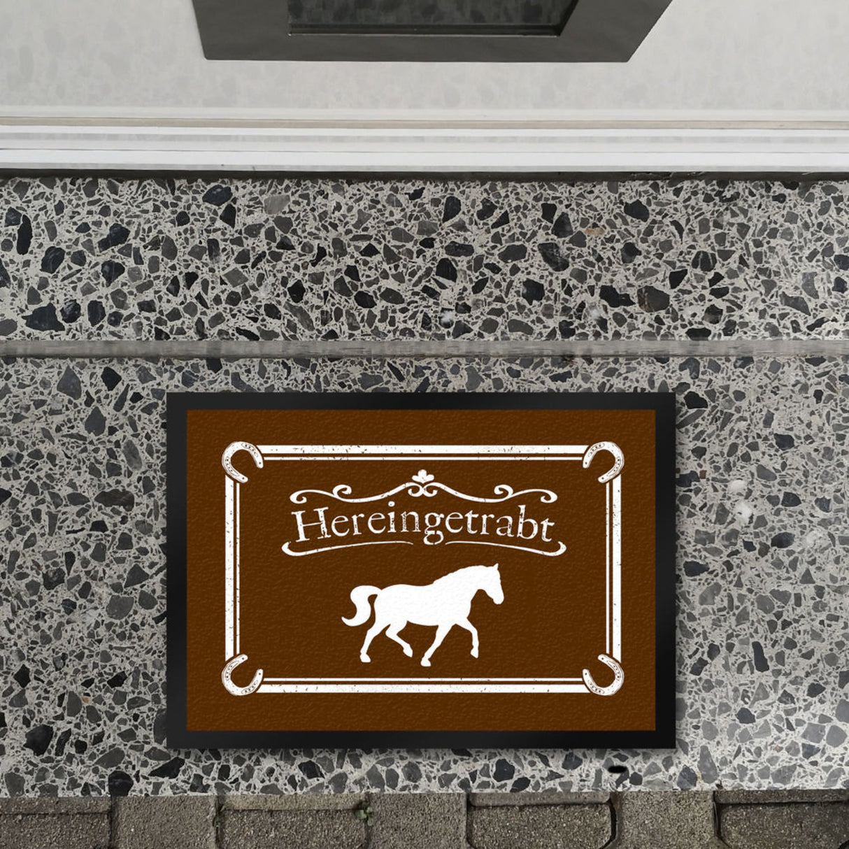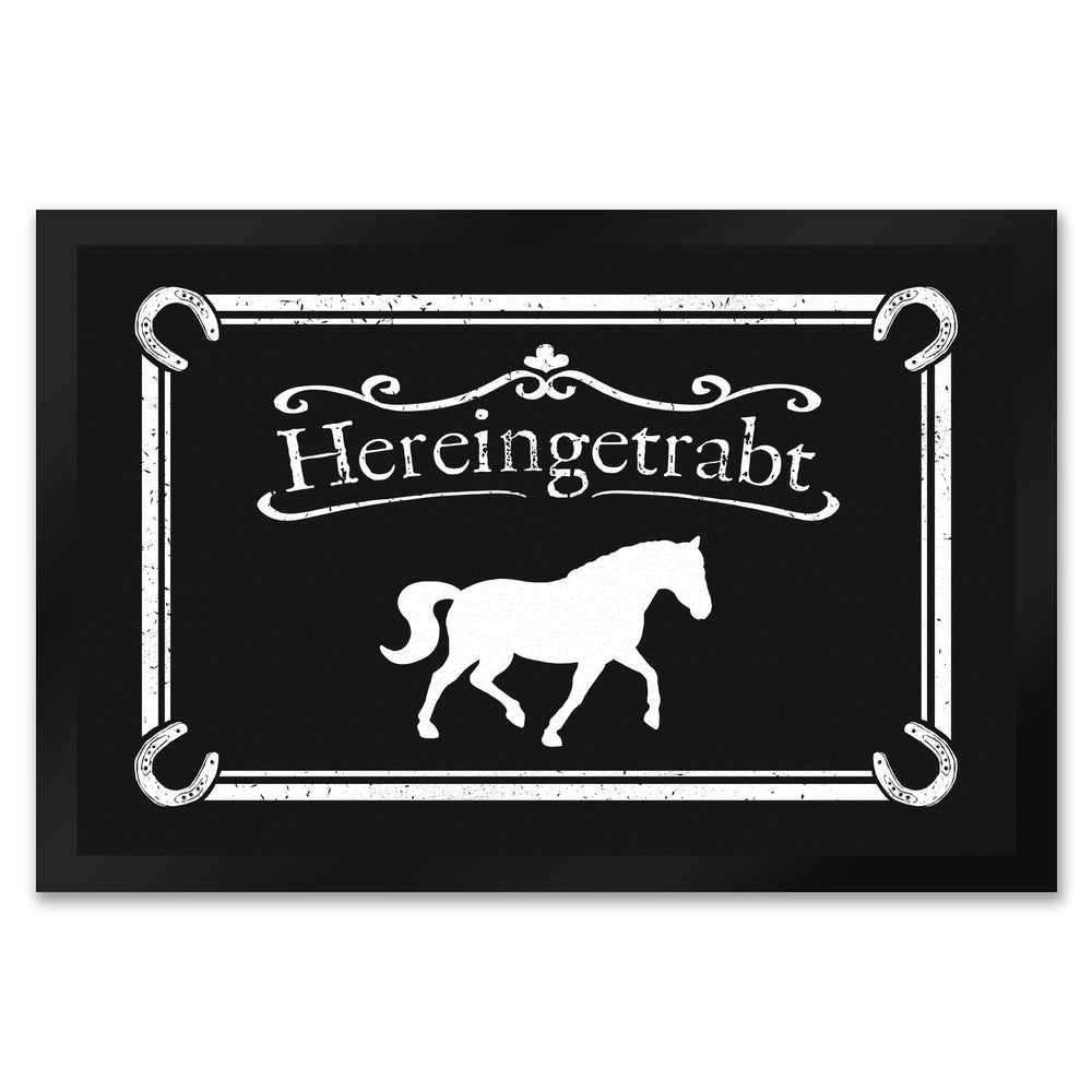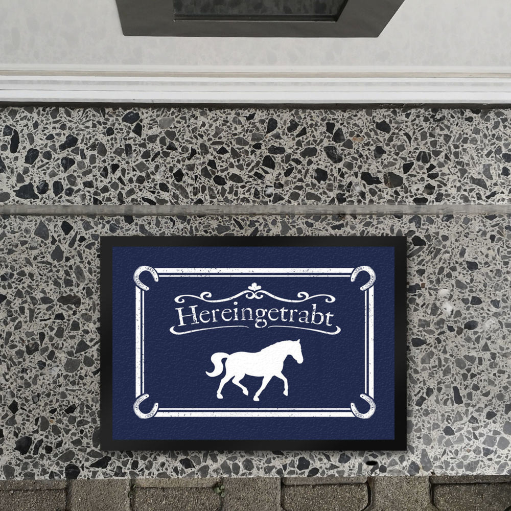 - Du liebst Pferde und hast sogar vielleicht ein Pferd im Stall, dann ist diese Fußmatte für dich das Richtige. Begrüße deinen Besuch mit einem freundlichen 'Hereingetrabt'.