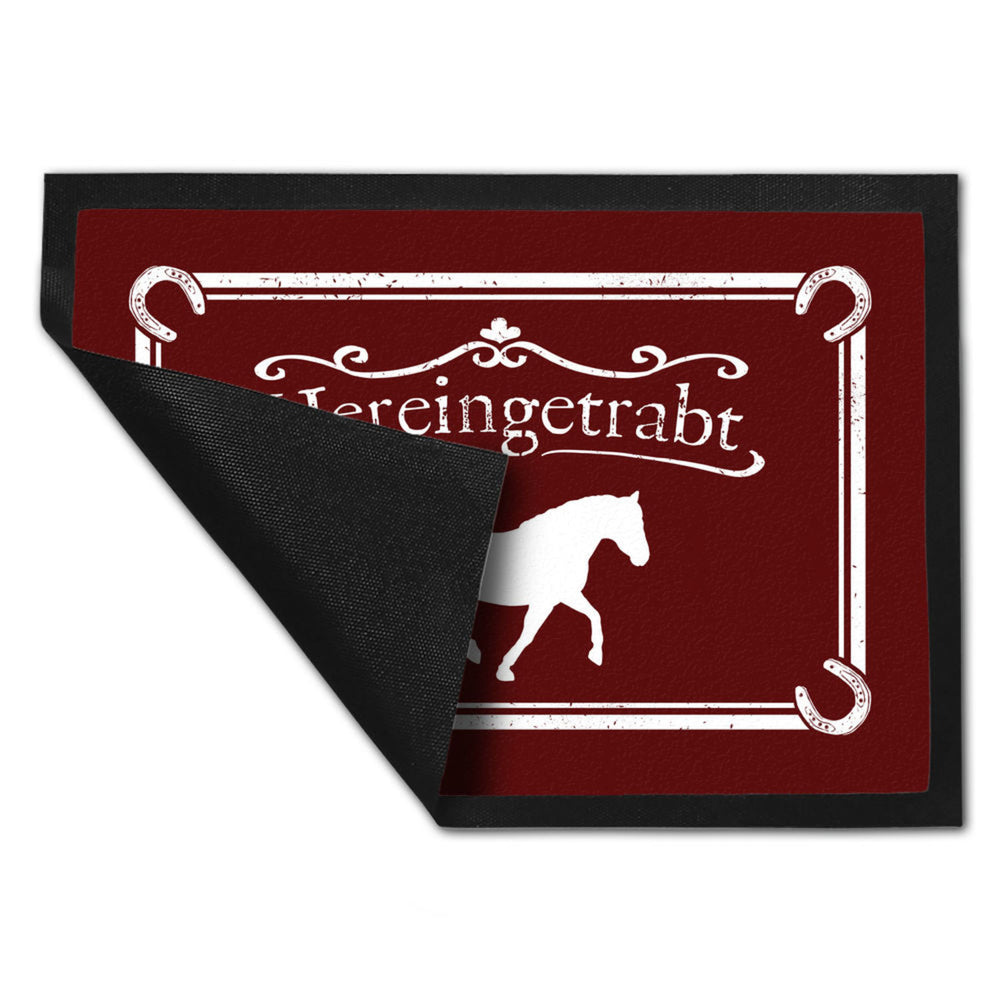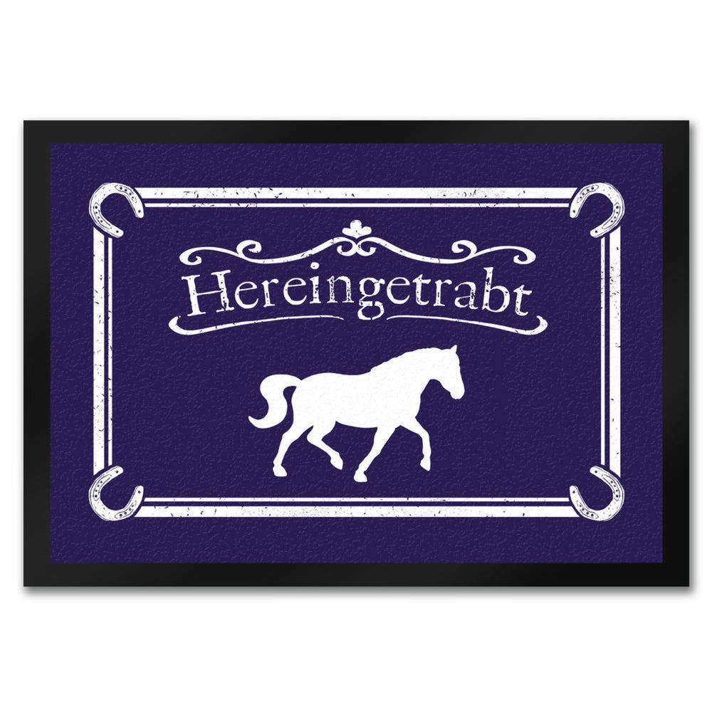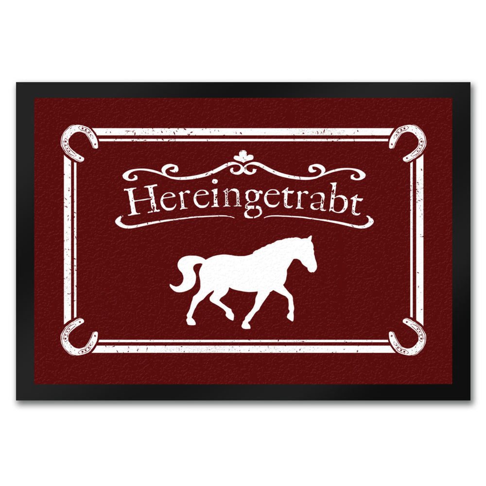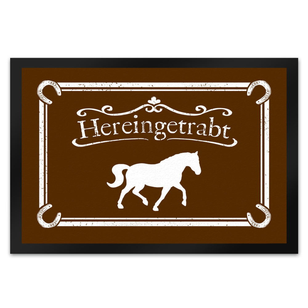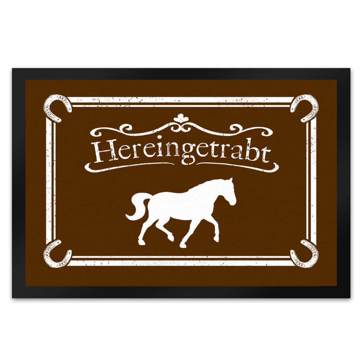 - Du liebst Pferde und hast sogar vielleicht ein Pferd im Stall, dann ist diese Fußmatte für dich das Richtige. Begrüße deinen Besuch mit einem freundlichen 'Hereingetrabt'.