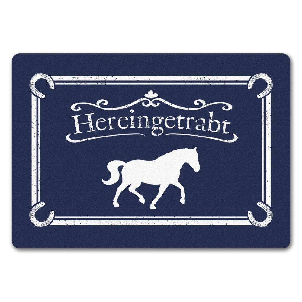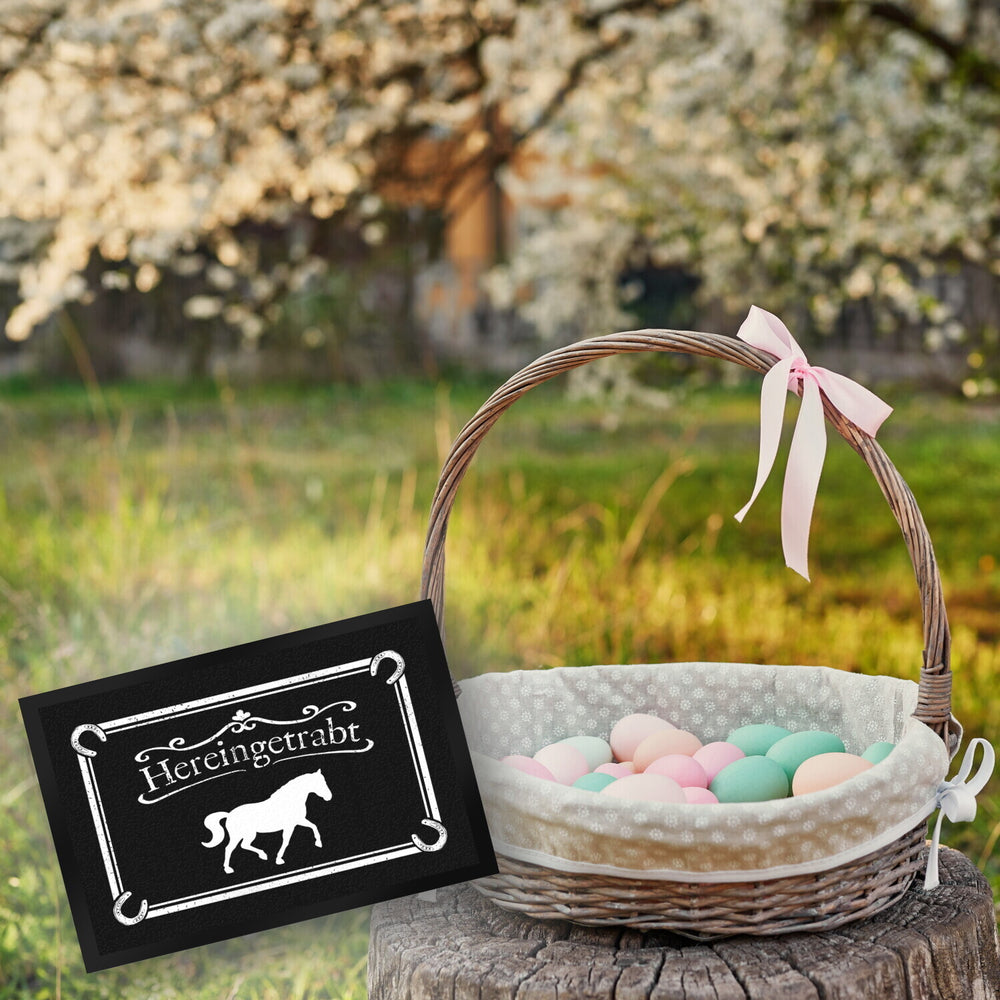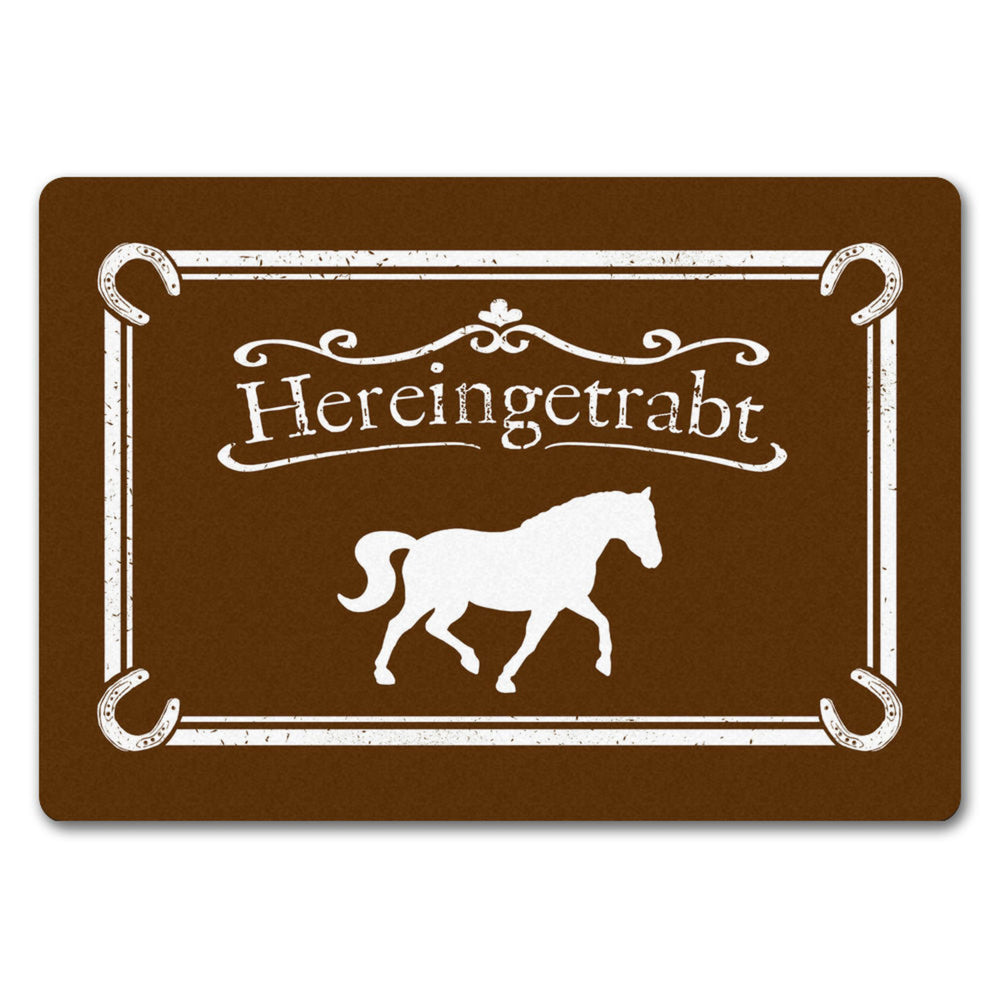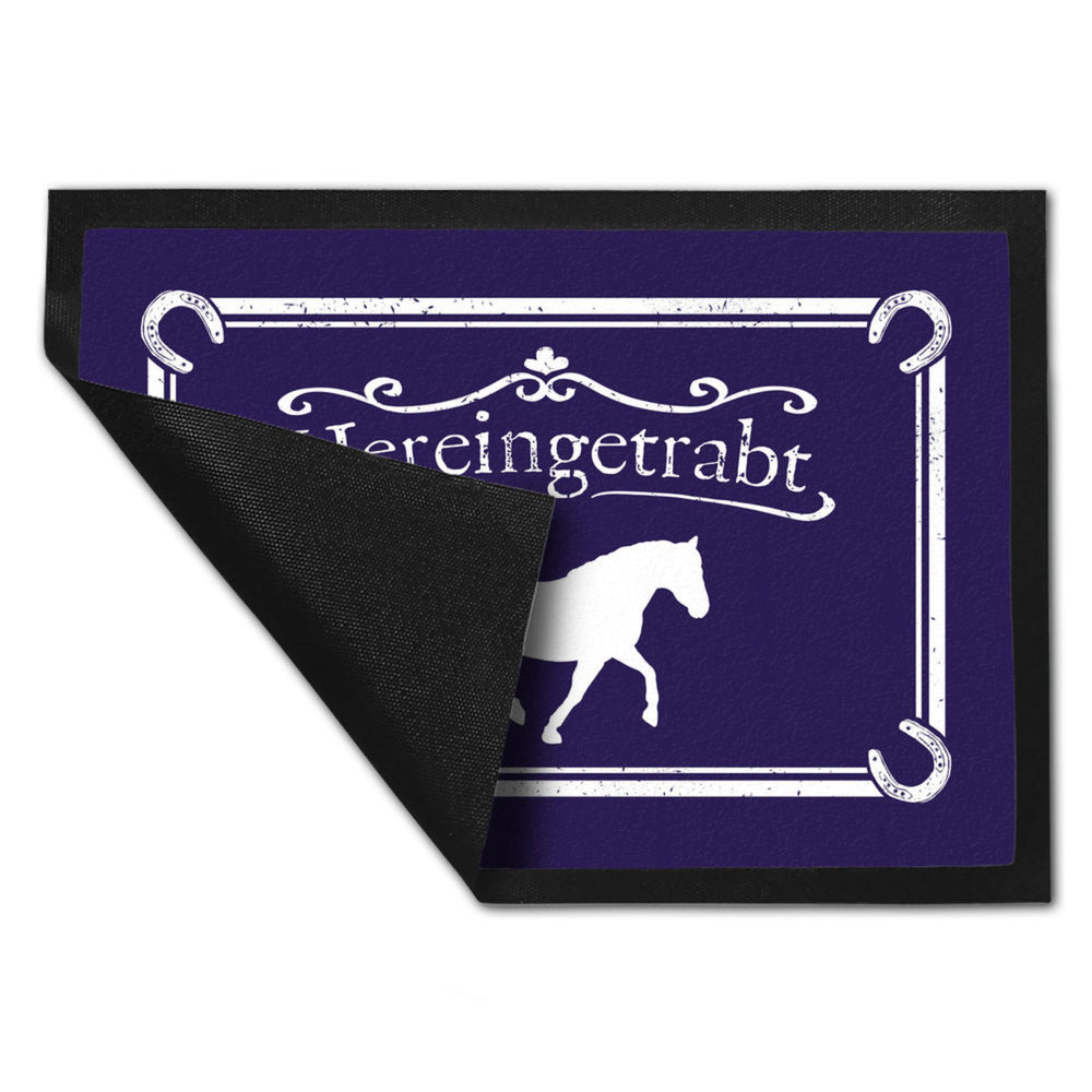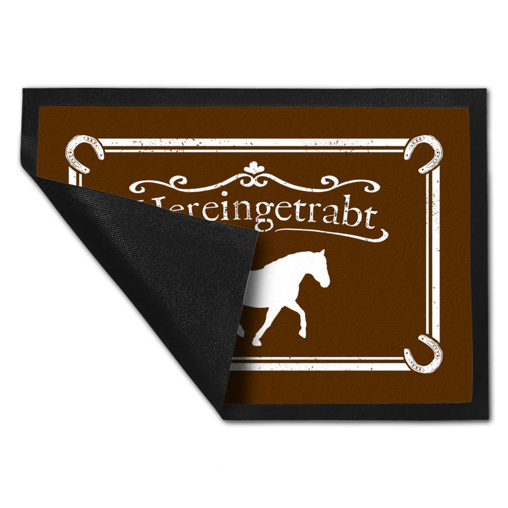 - Du liebst Pferde und hast sogar vielleicht ein Pferd im Stall, dann ist diese Fußmatte für dich das Richtige. Begrüße deinen Besuch mit einem freundlichen 'Hereingetrabt'.