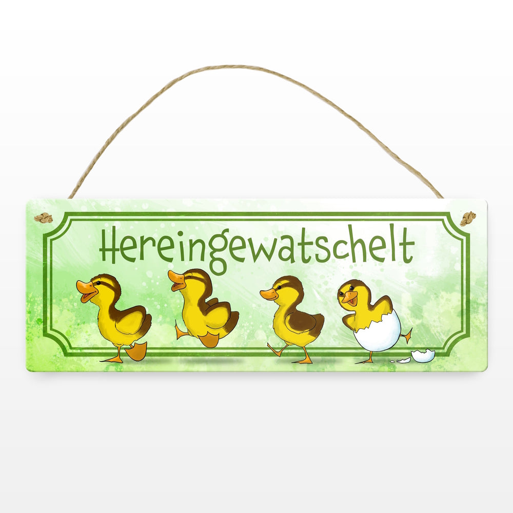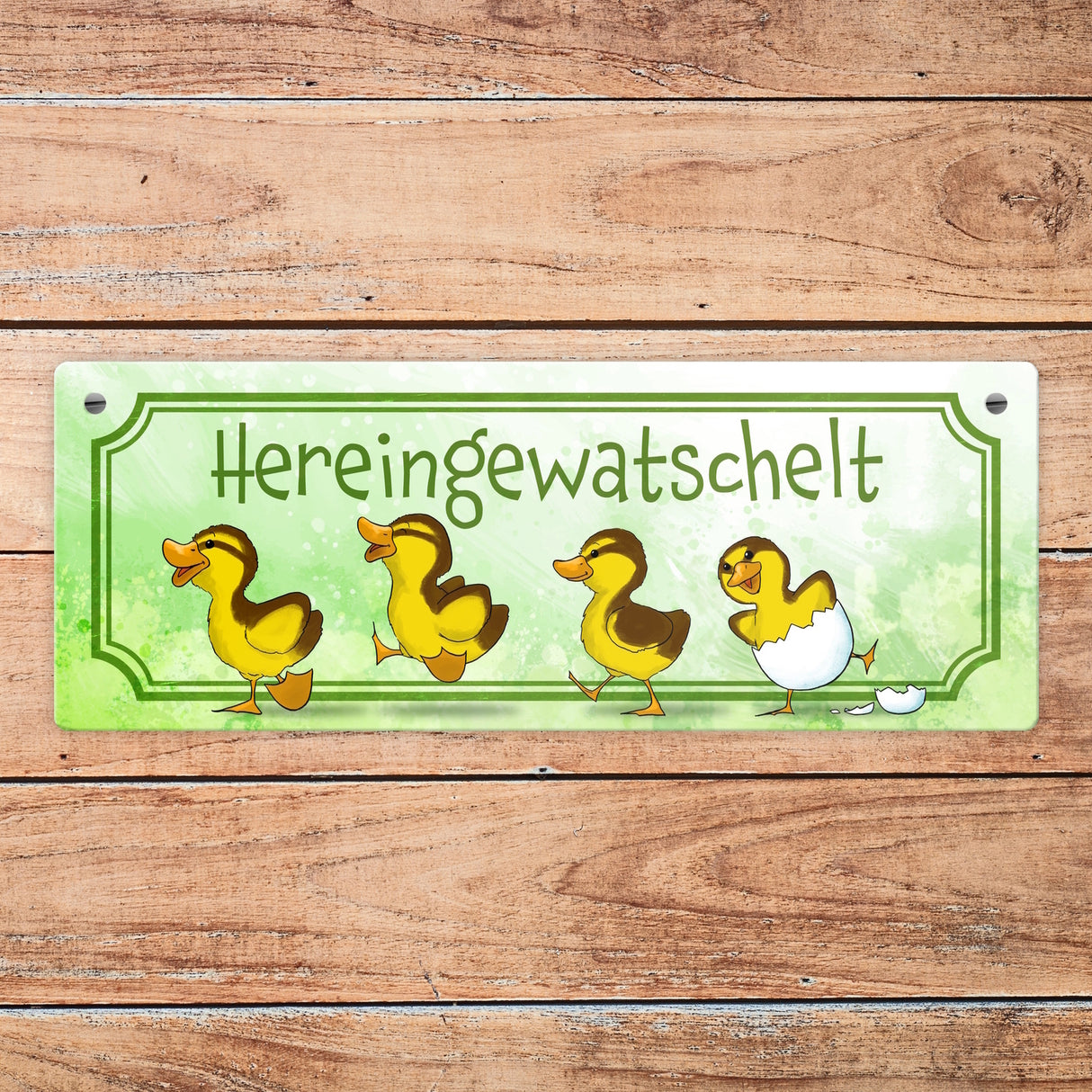Hereingewatschelt Metallschild mit niedlichen Entchen - 7,5x20 cm ist auf Lager und wird versandt, sobald es wieder verfügbar ist