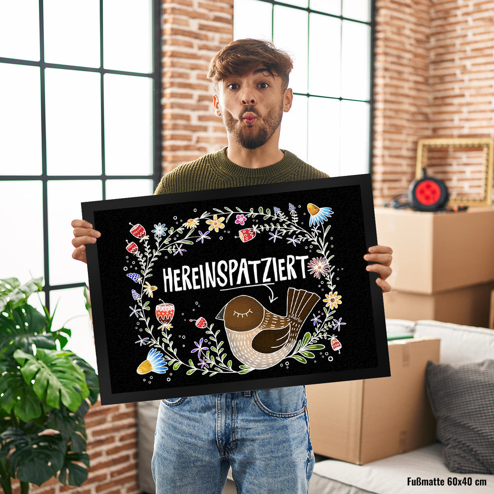 - 1x Hereinspatziert Vogel Fußmatte in der gewählten Größe