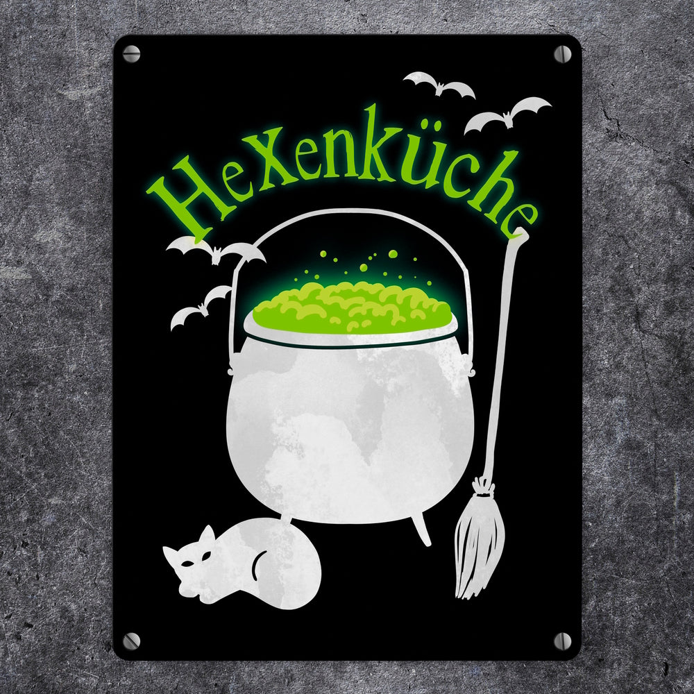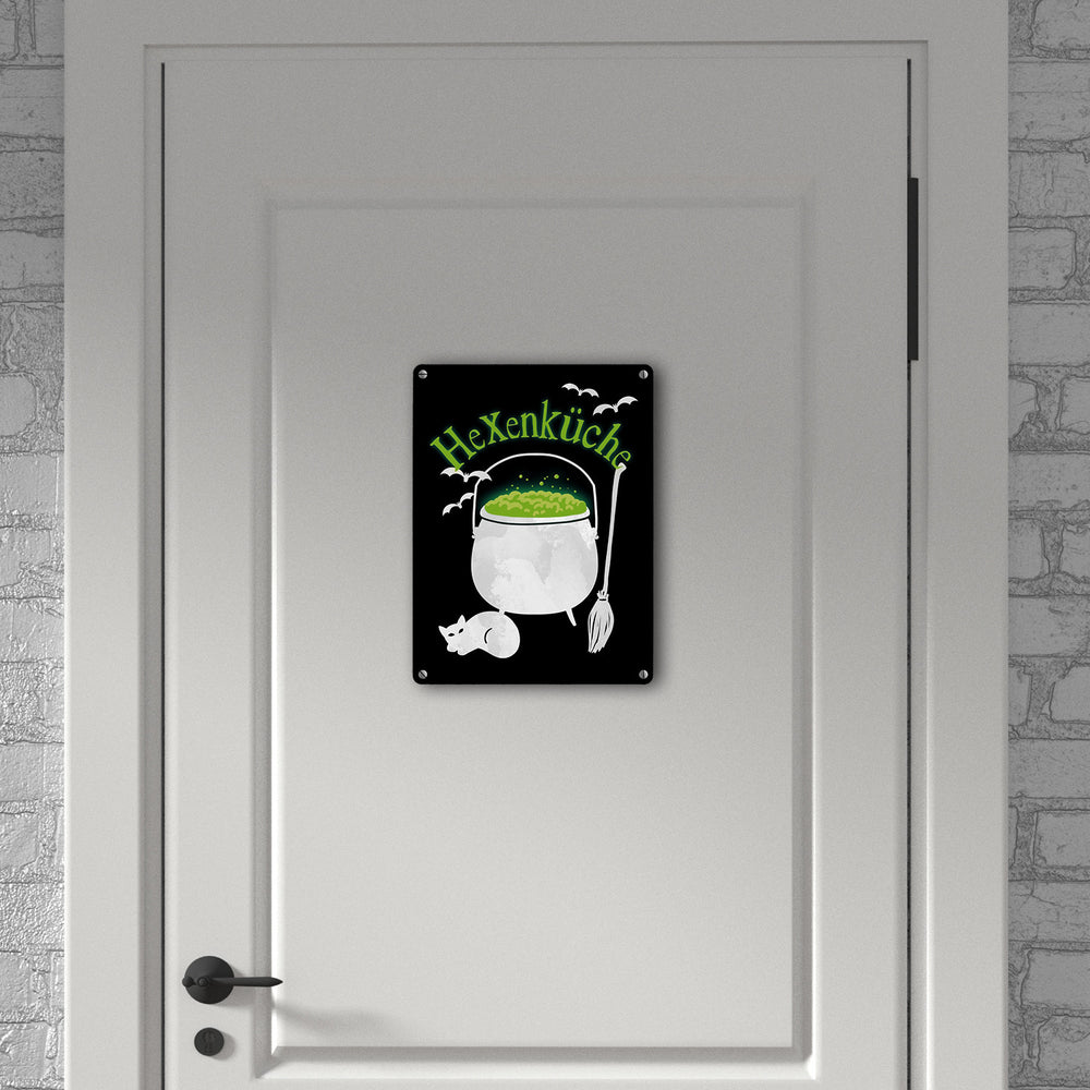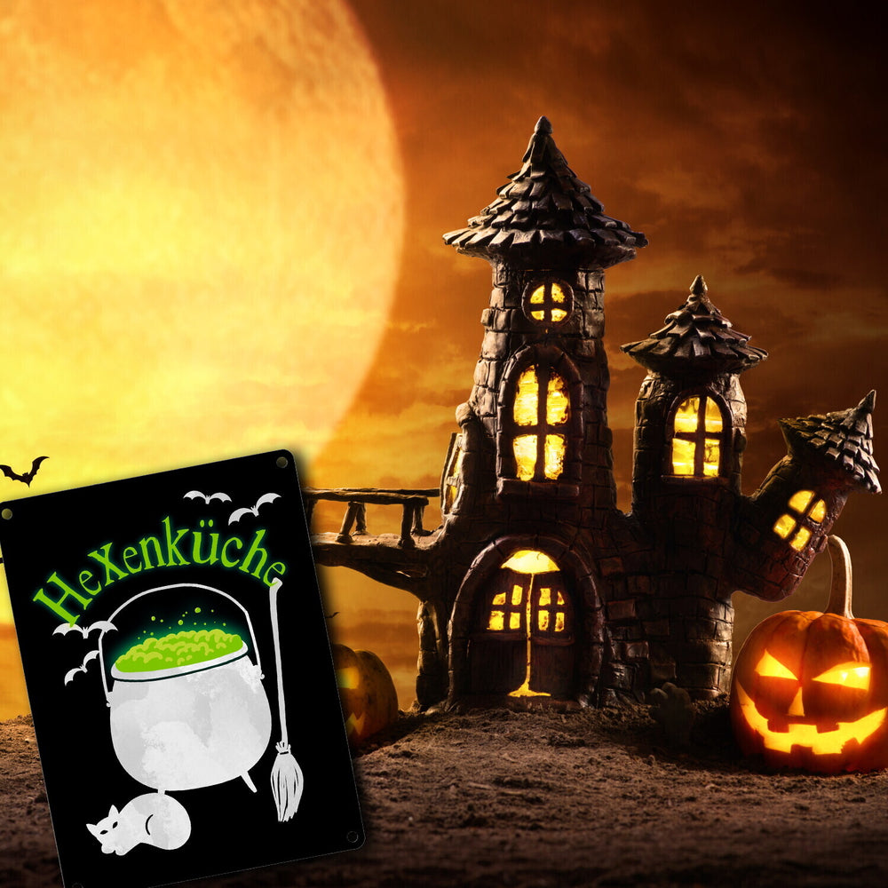 • 1x Hexenküche Metallschild mit Hexenkessel für Halloween in der gewählten Größe