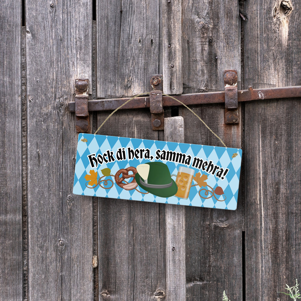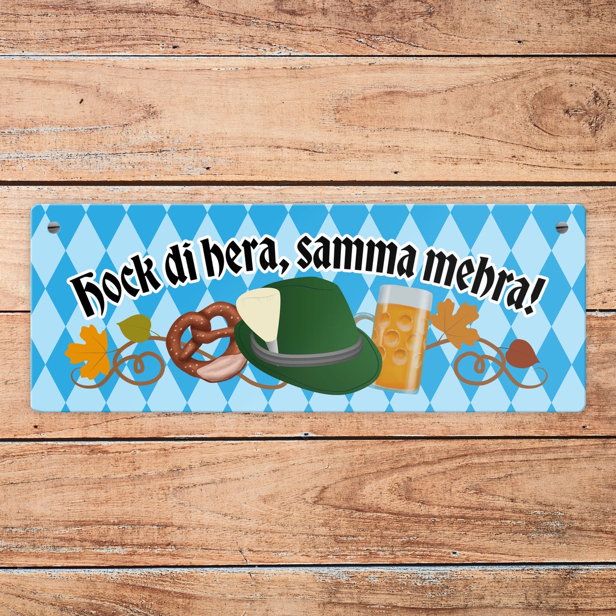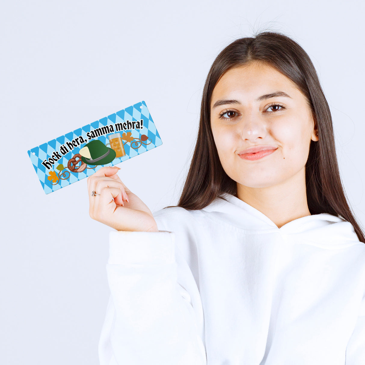 • 1x Hock di hera, samma mehra Metallschild mit Bier und Brezel in der gewählten Größe