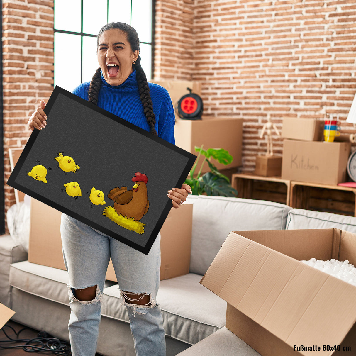 - Du hast Hühner. und ein Leben ohne sie kannst du dir gar nicht mehr vorstellen. Hole dir diese hübsche, dekorative Fußmatte mit lustigem Huhn- und Küken-Motiv.