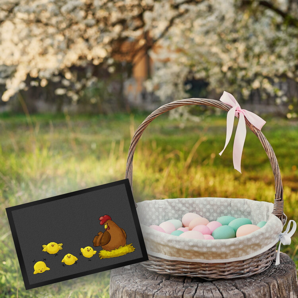 - 1x Huhn im Nest mit Küken Fußmatte in der gewählten Größe