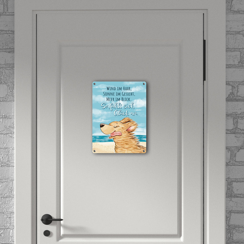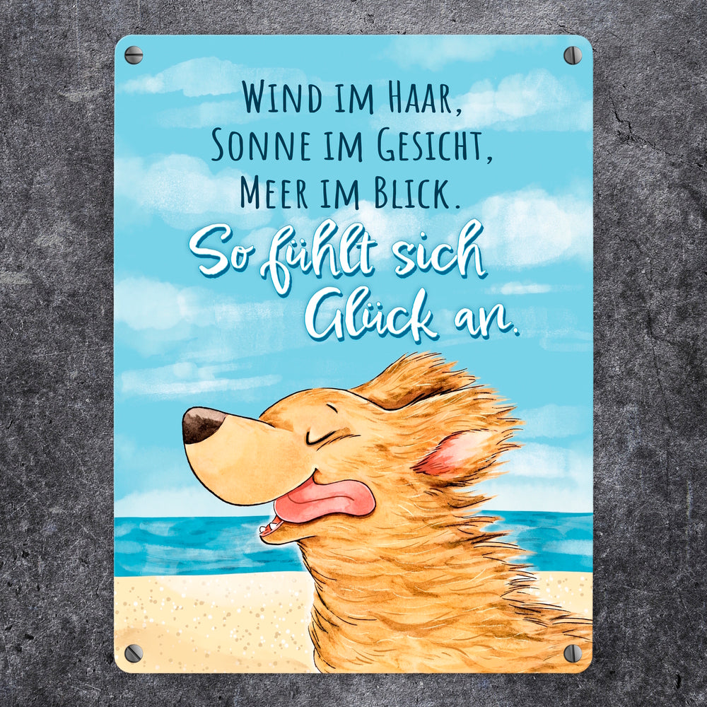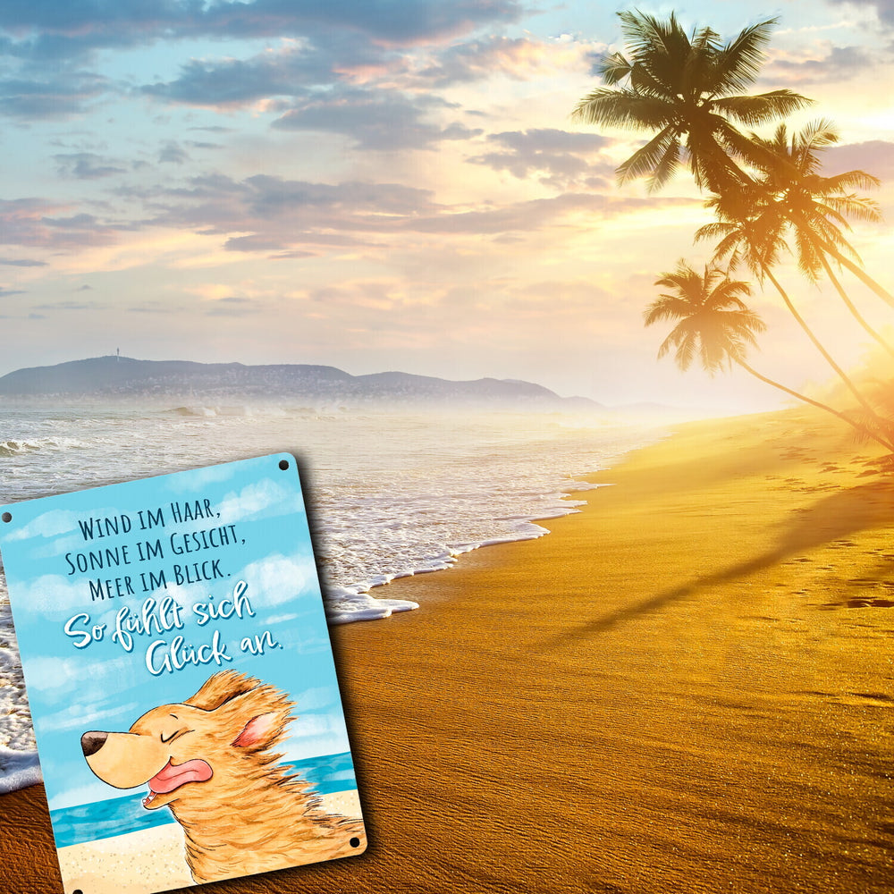 Hund Metallschild in 15x20 cm mit Spruch Wind Sonne Meer - pures Glück