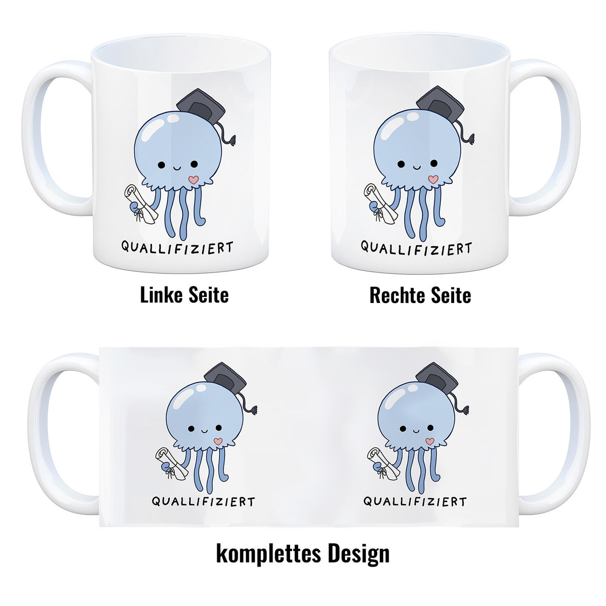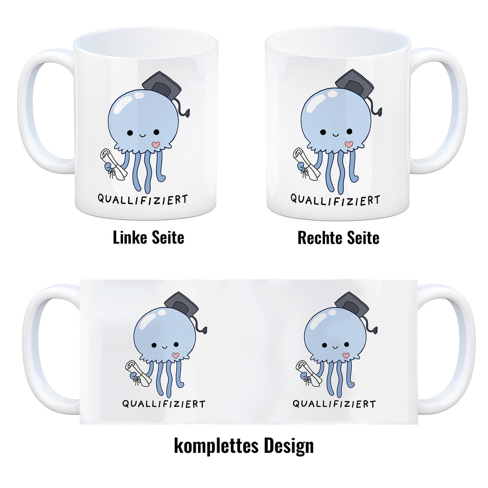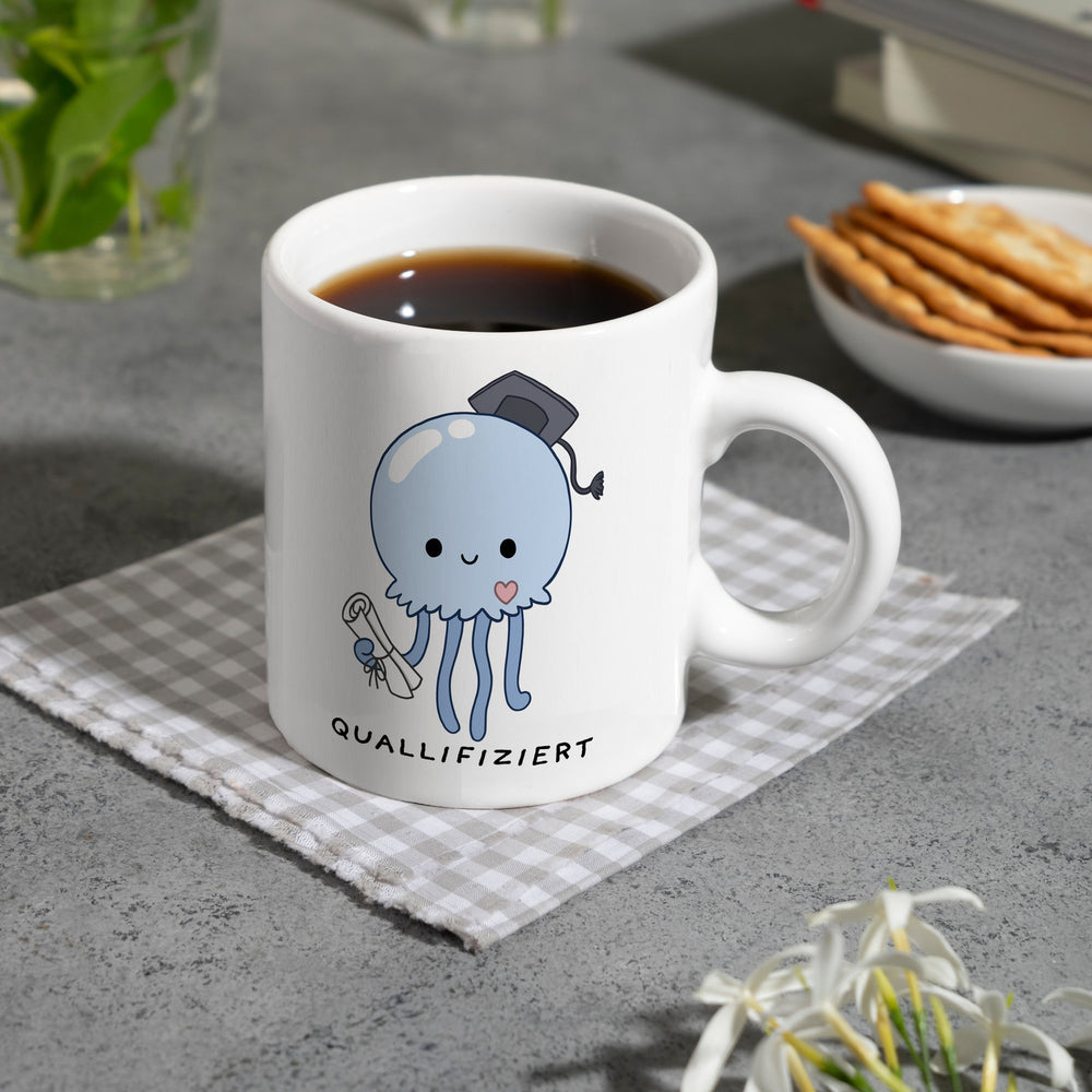 - 1x Jelly & Friends Qualle Kaffeebecher mit Spruch Quallifiziert in der gewählten Ausführung