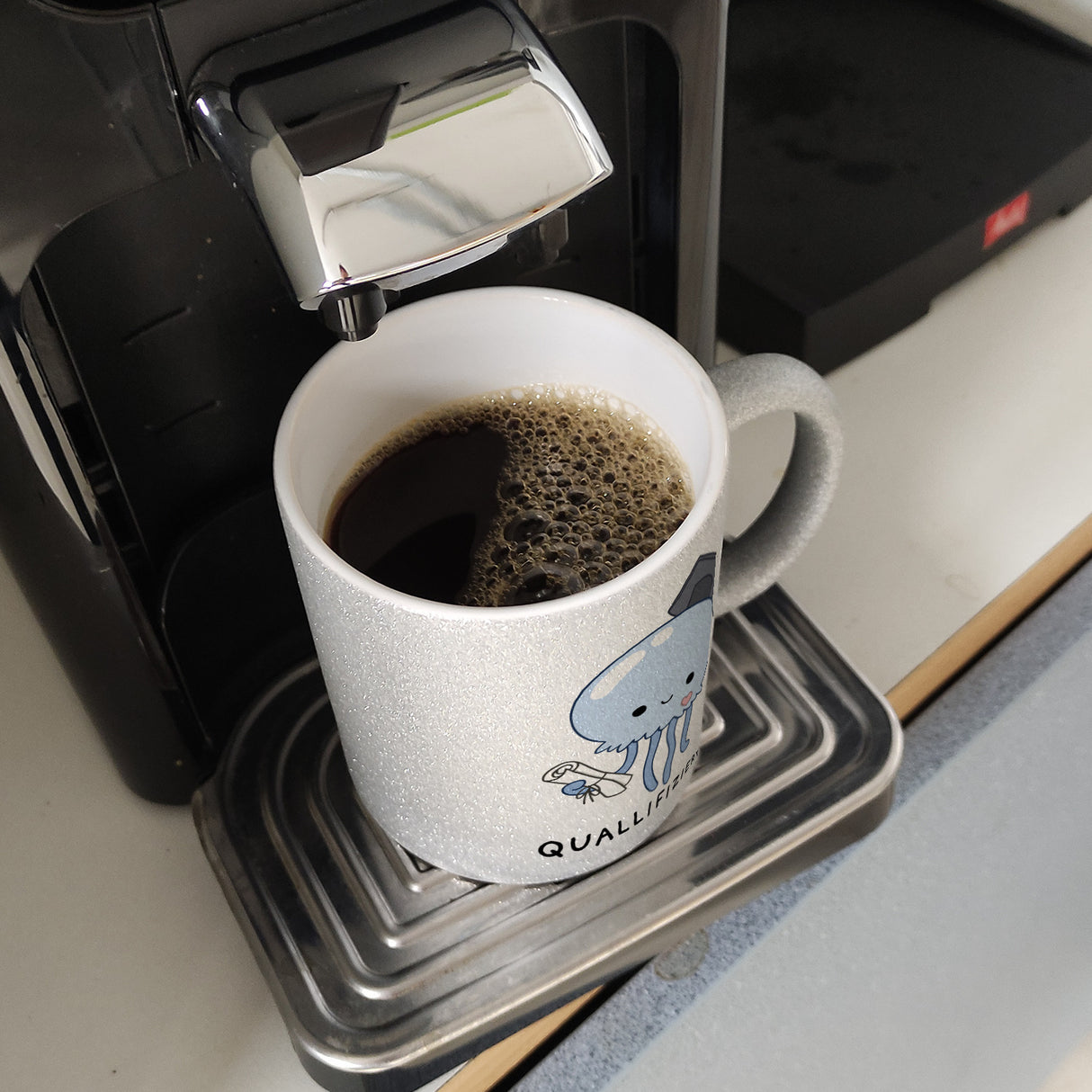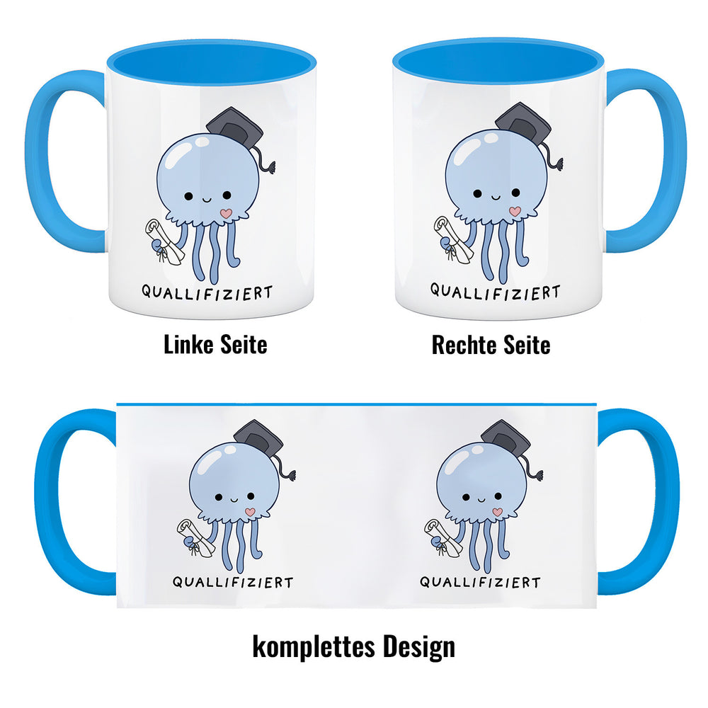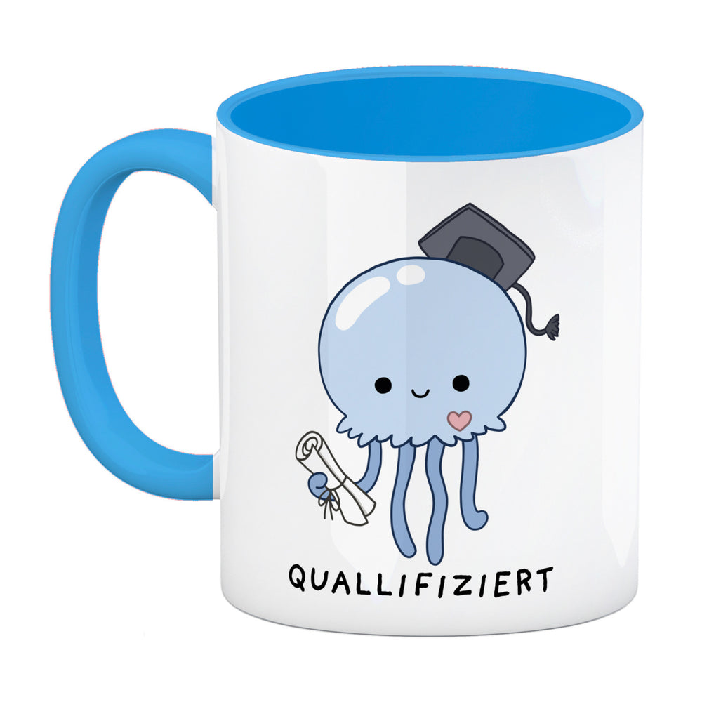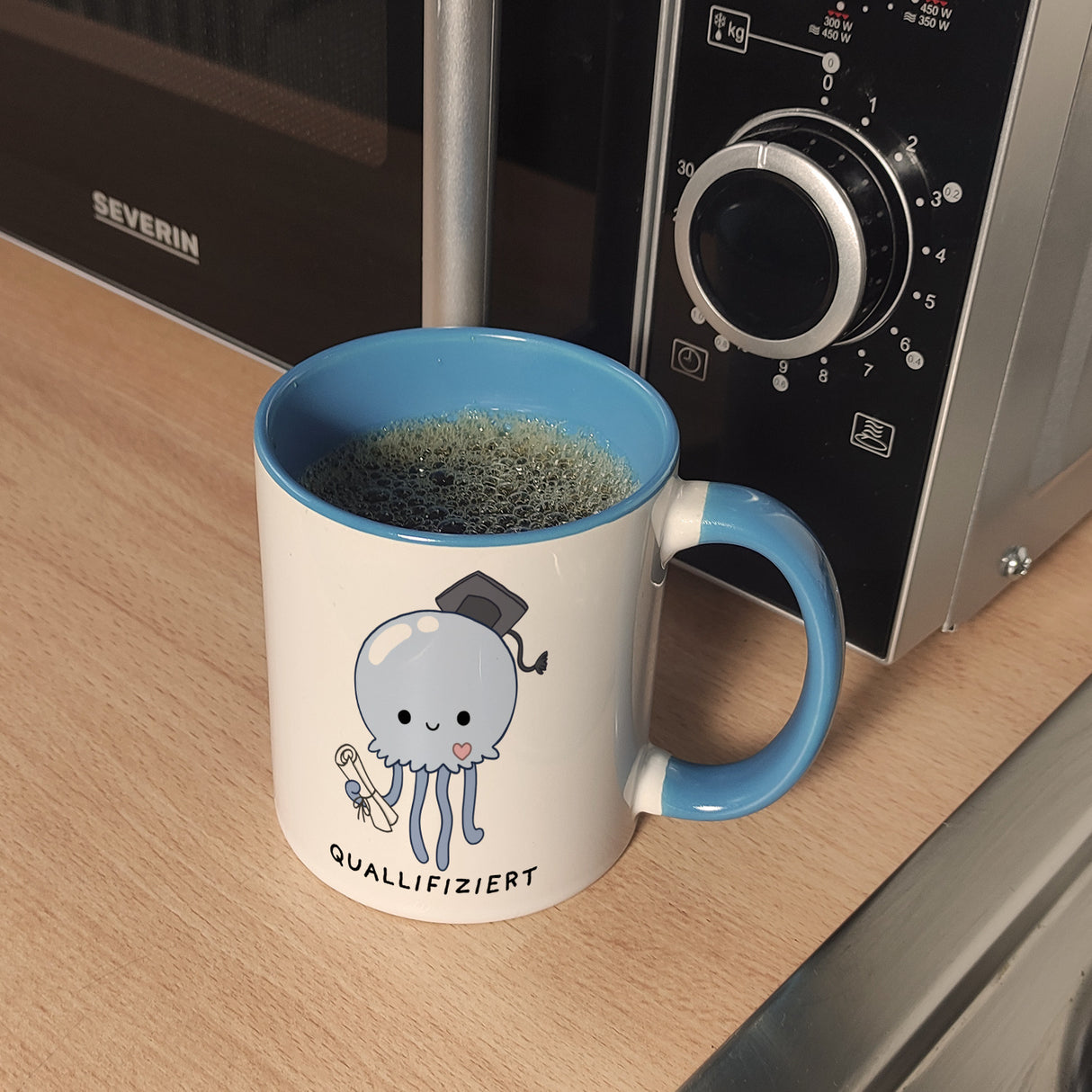 - 1x Jelly & Friends Qualle Kaffeebecher mit Spruch Quallifiziert in der gewählten Ausführung