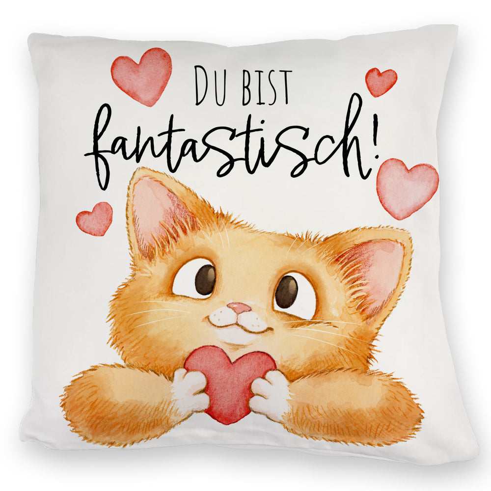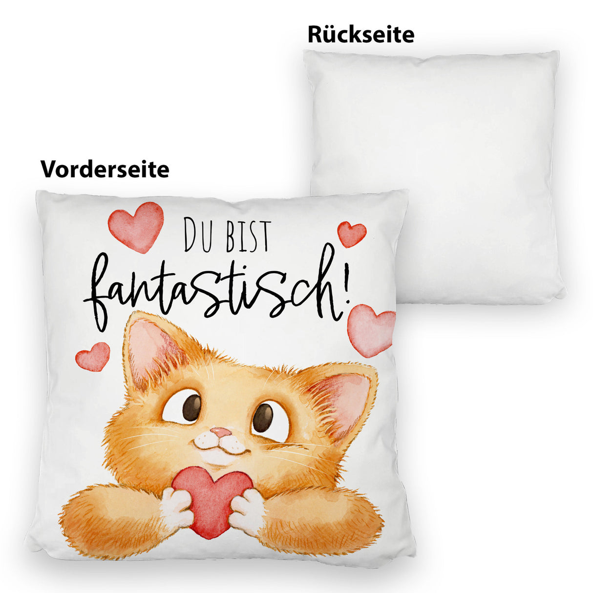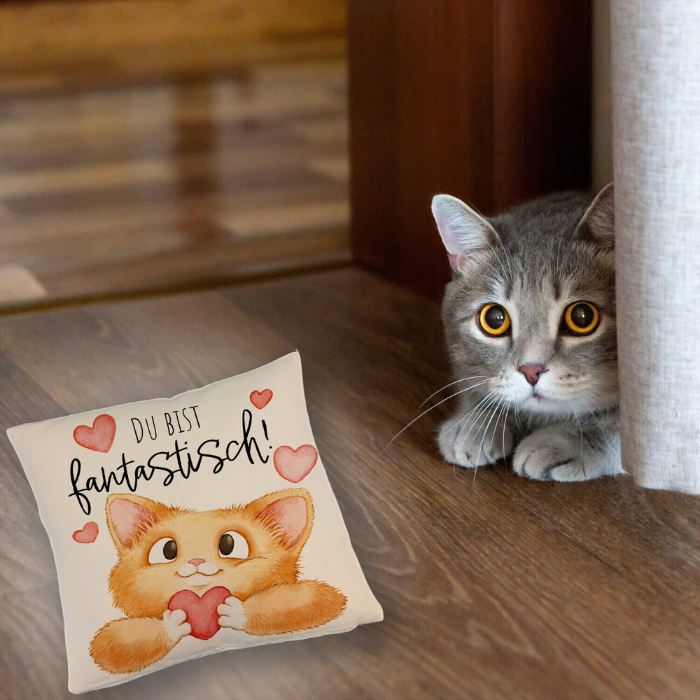 - 1x Katze Kissen mit Spruch Du bist fantastisch in der gewählten Ausführung