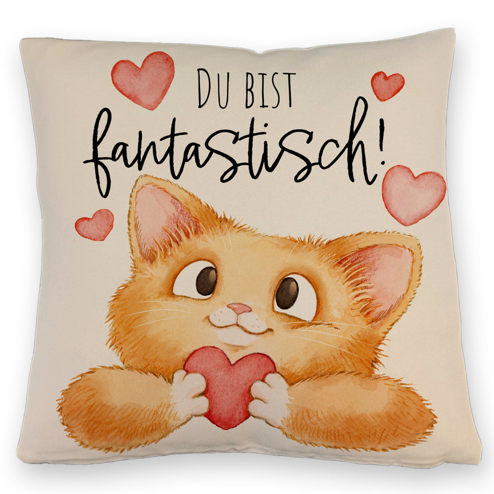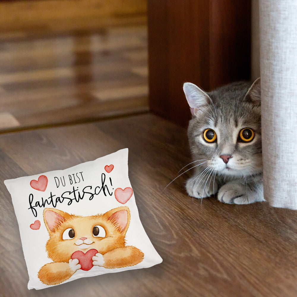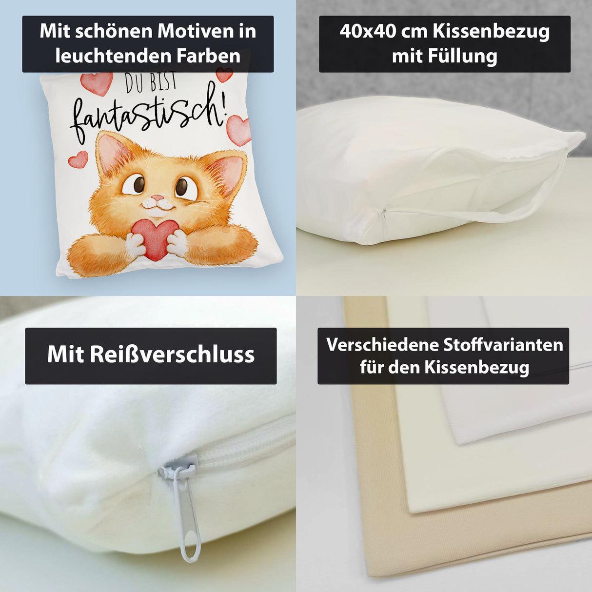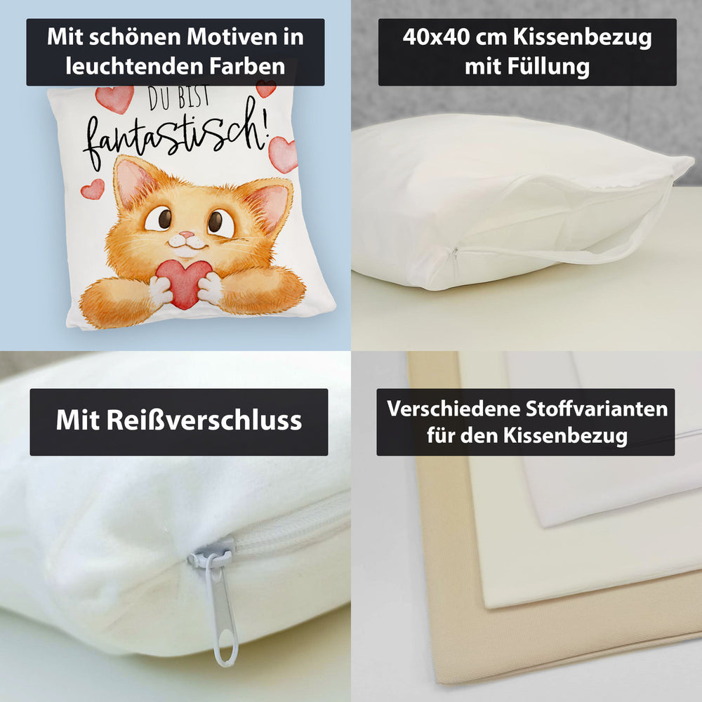 - 1x Katze Kissen mit Spruch Du bist fantastisch in der gewählten Ausführung
