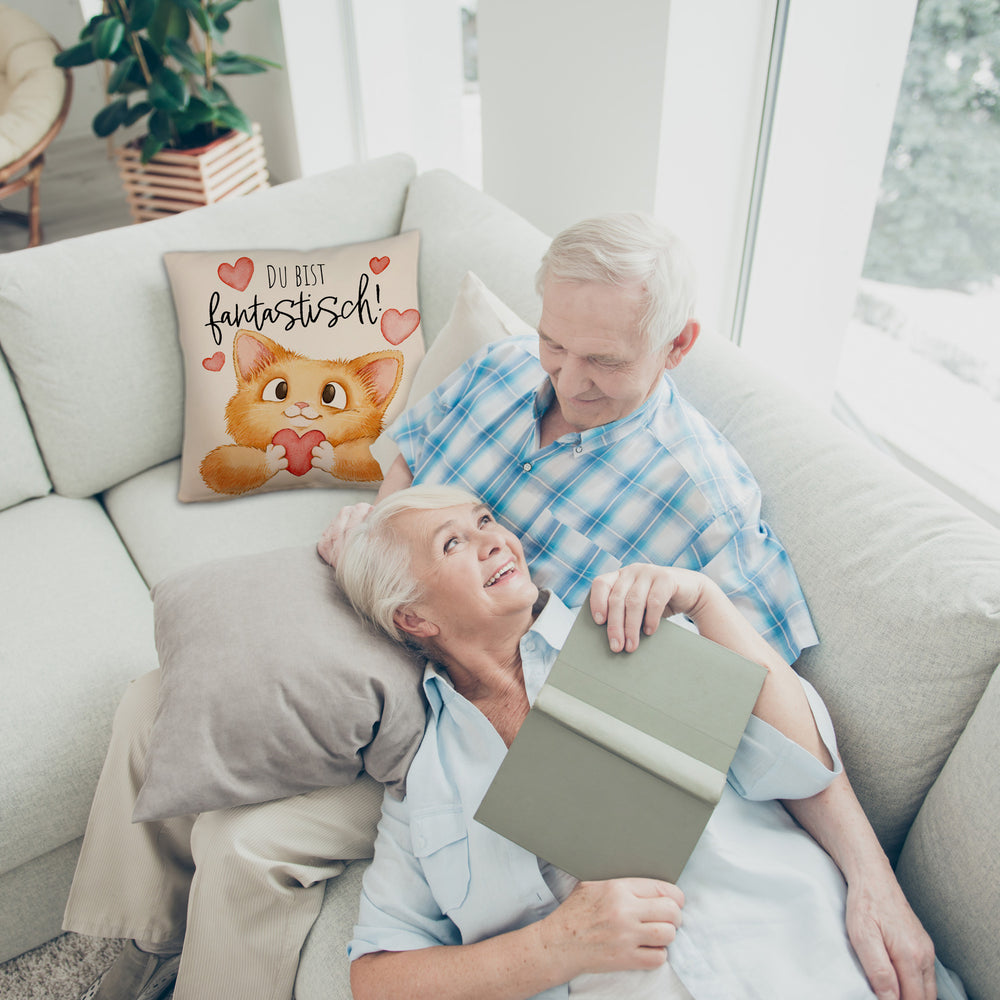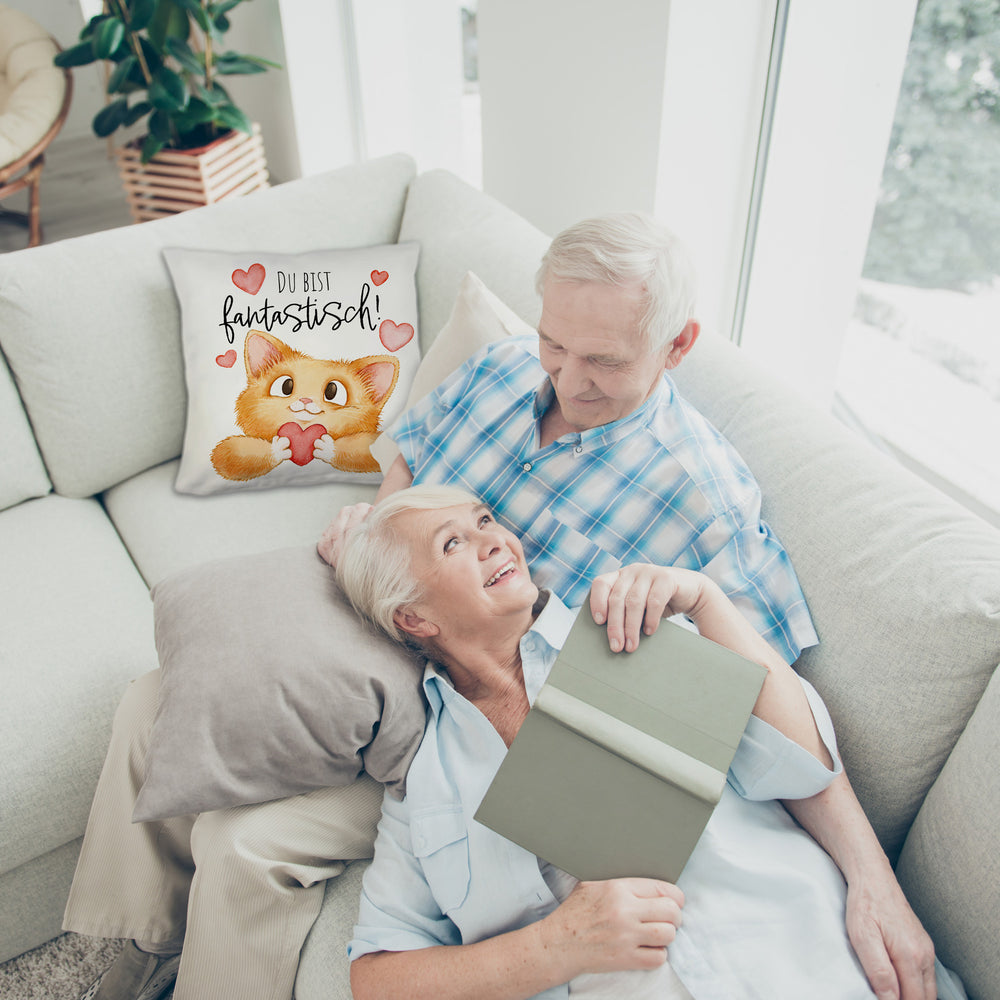 Katze Kissen mit Spruch Du bist fantastisch - Standard ist auf Lager und wird versandt, sobald es wieder verfügbar ist