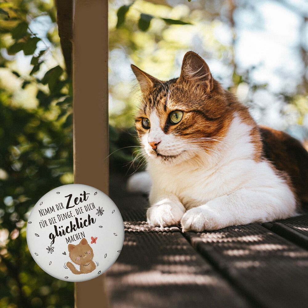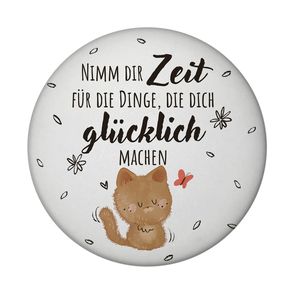 Katze Magnet rund rund mit Spruch Zeit für dein Glück nehmen