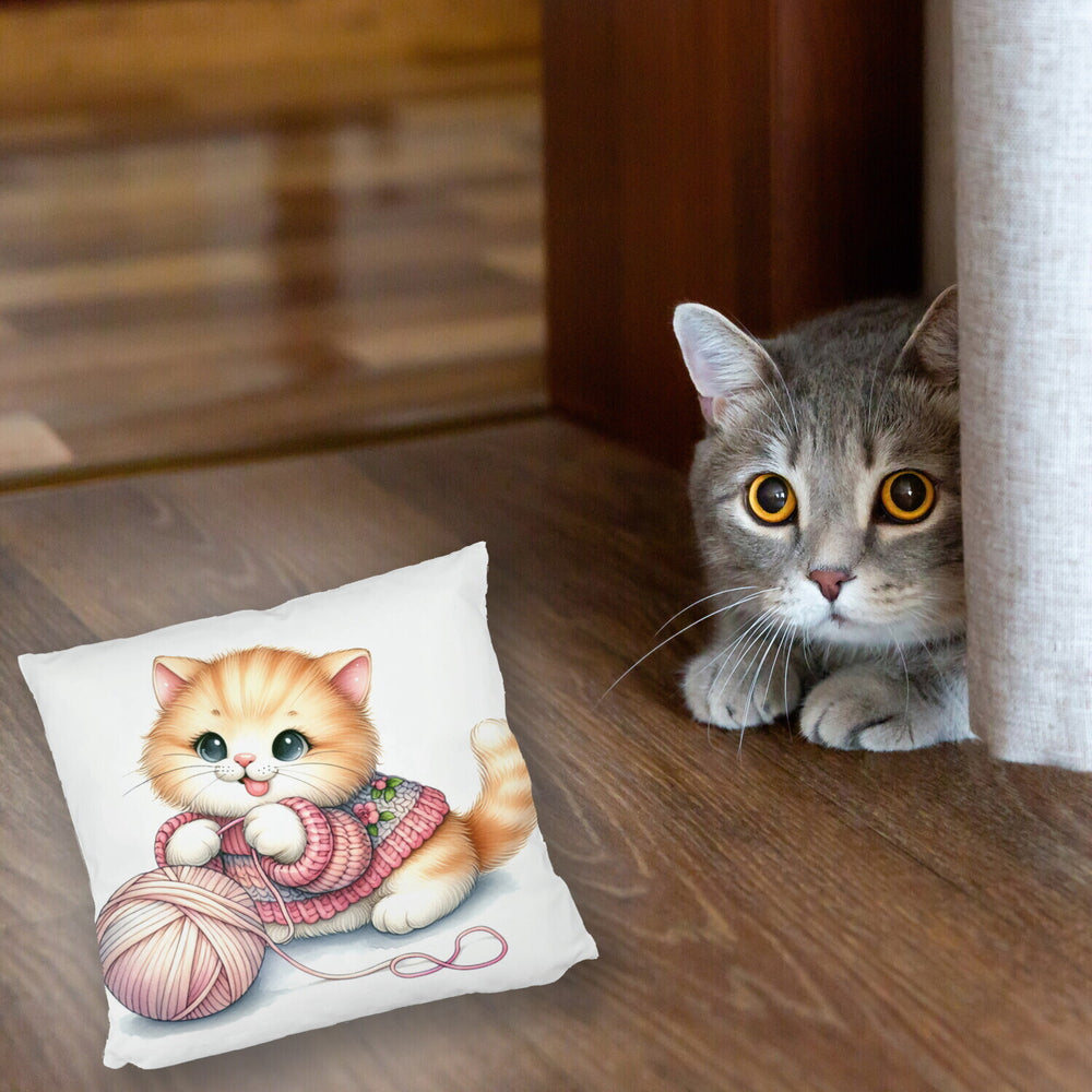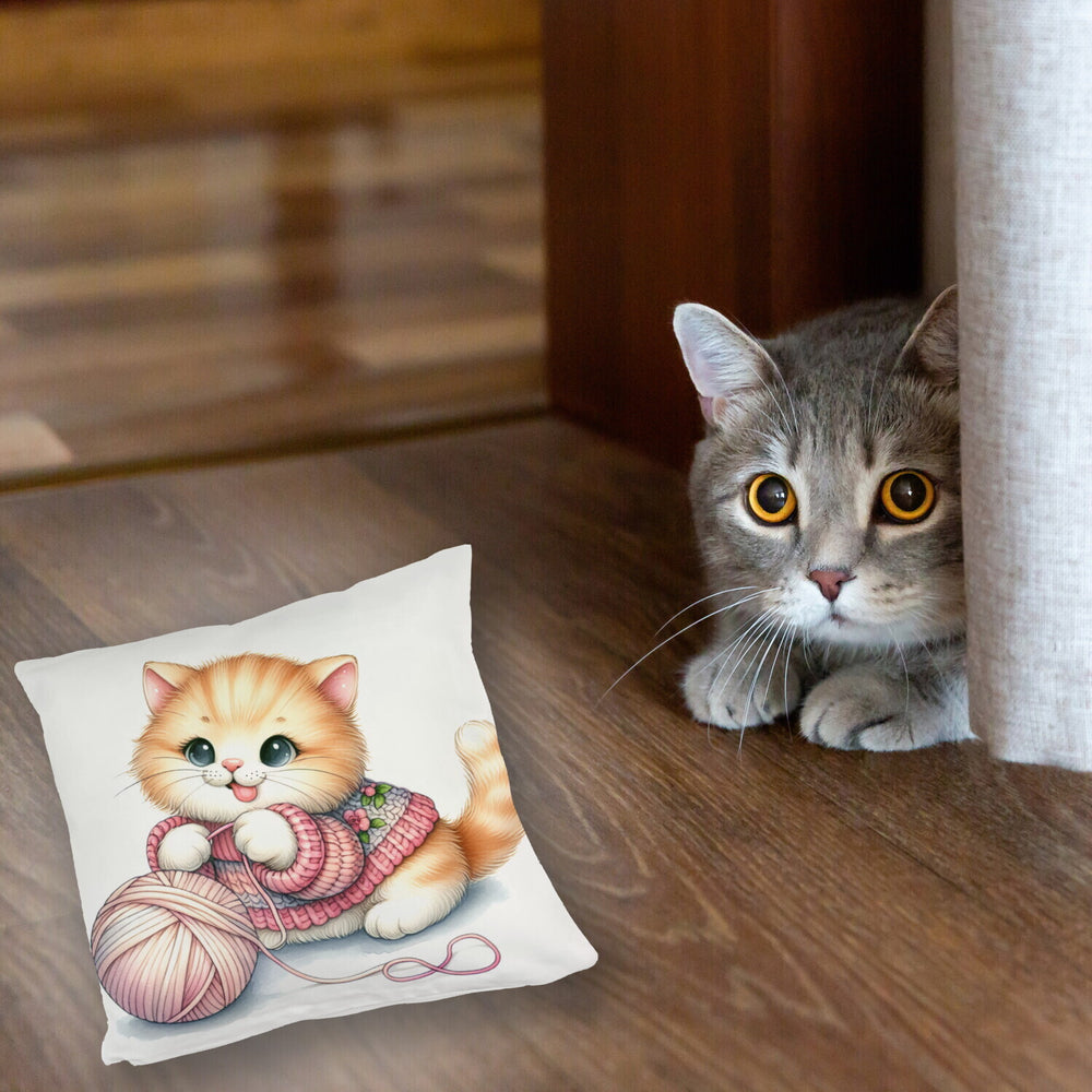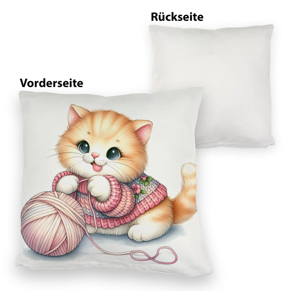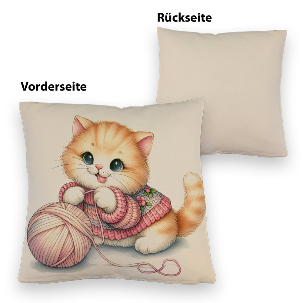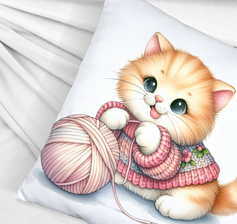 - Kuschel-Alarm! Unser Katzenbaby mit Wollknäuel Kissen bringt die Purr-fektion in dein Zuhause. Ein flauschiges Kätzchen, das sich mit einem bunten Woll-Ball vergnügt – zu süß, um wahr zu sein, oder? Holt euch schnurrende Träume auf’s Sofa!