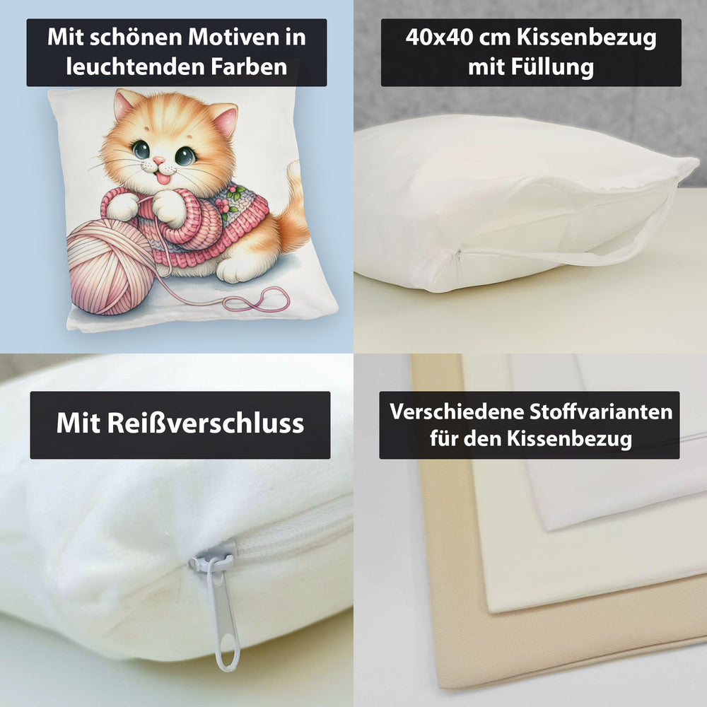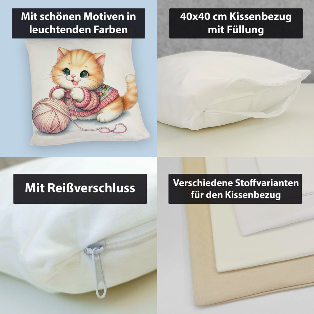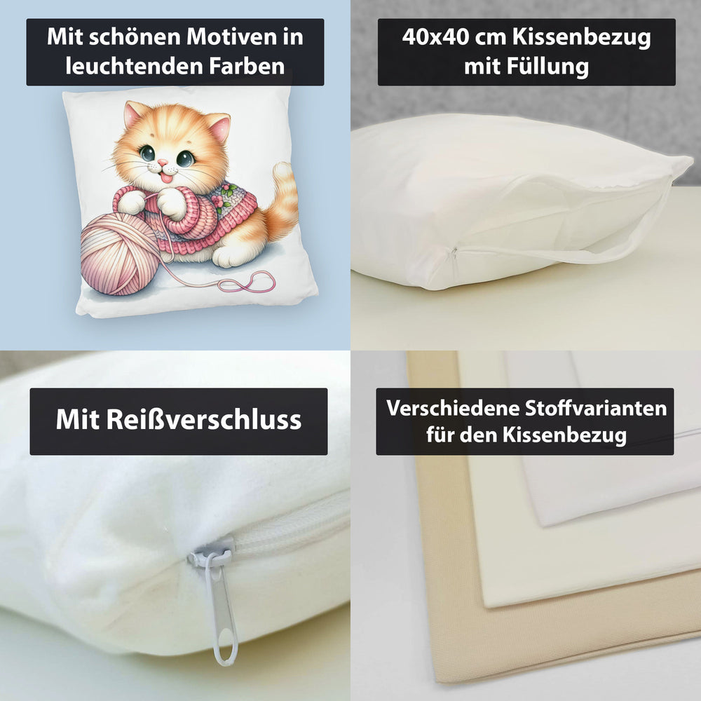 - 1x Katzenbaby mit Wollknäuel Kissen in der gewählten Ausführung