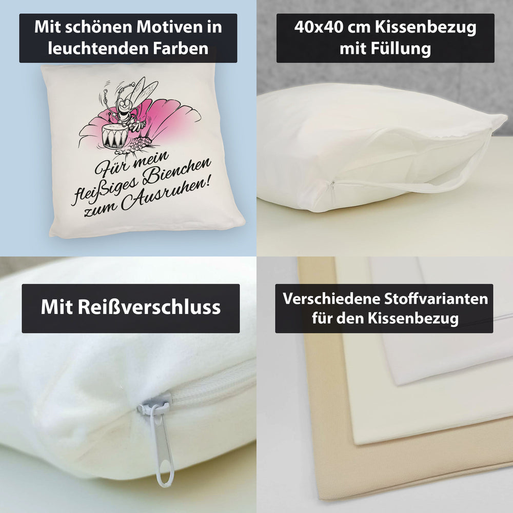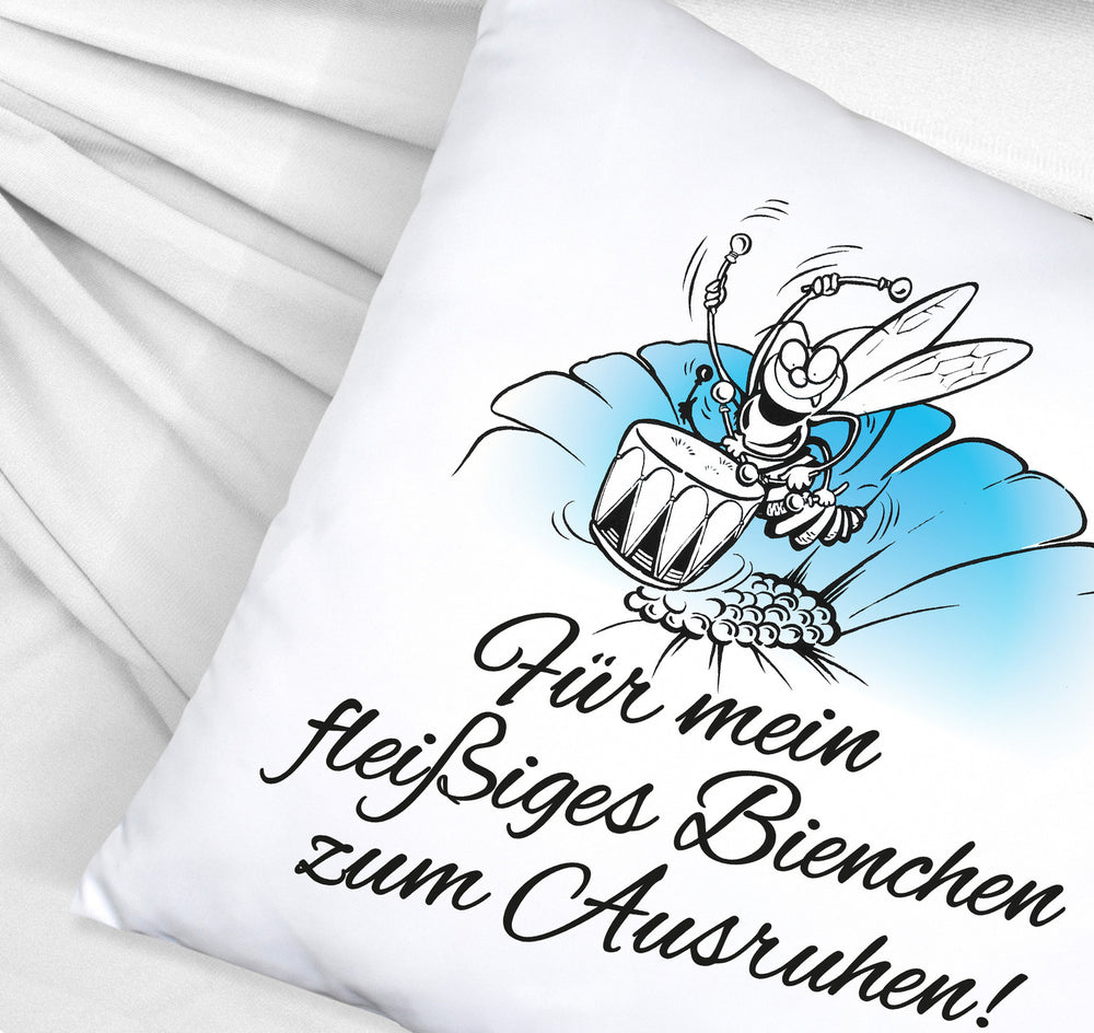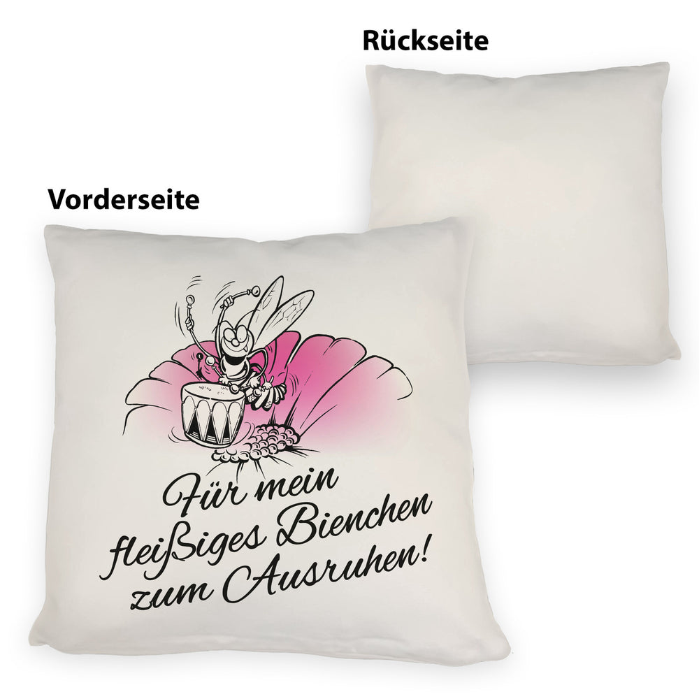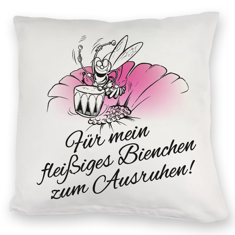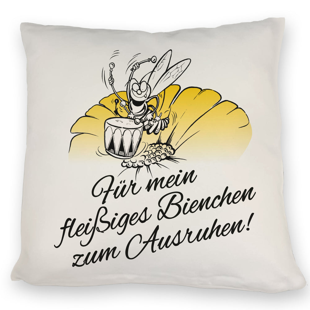 • 1x Kissen mit Bienen Motiv mit Spruch mein fleißiges Bienchen in der gewählten Ausführung