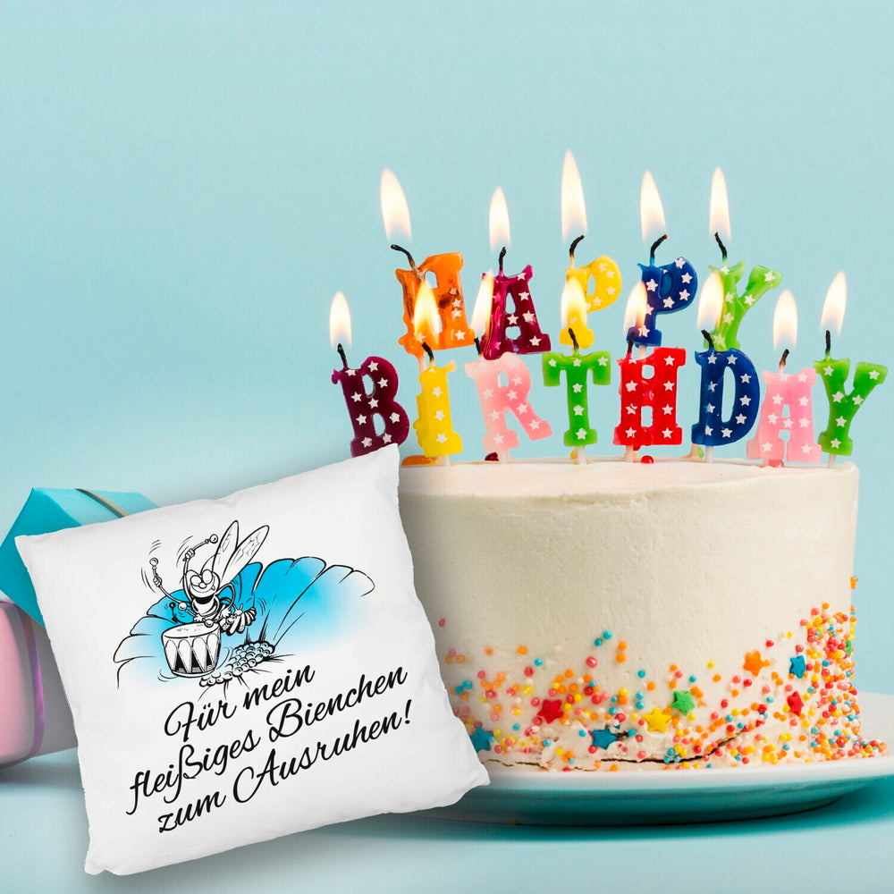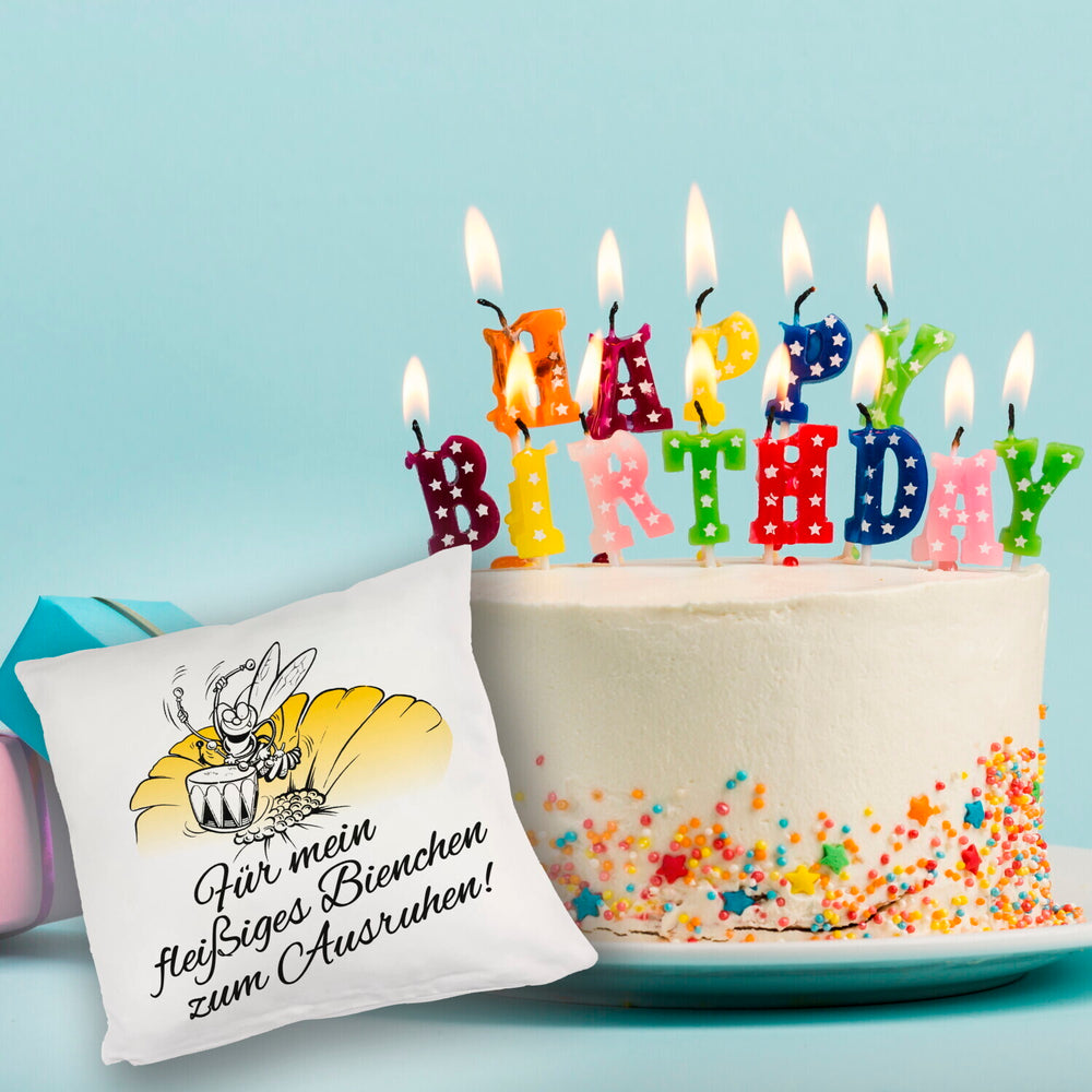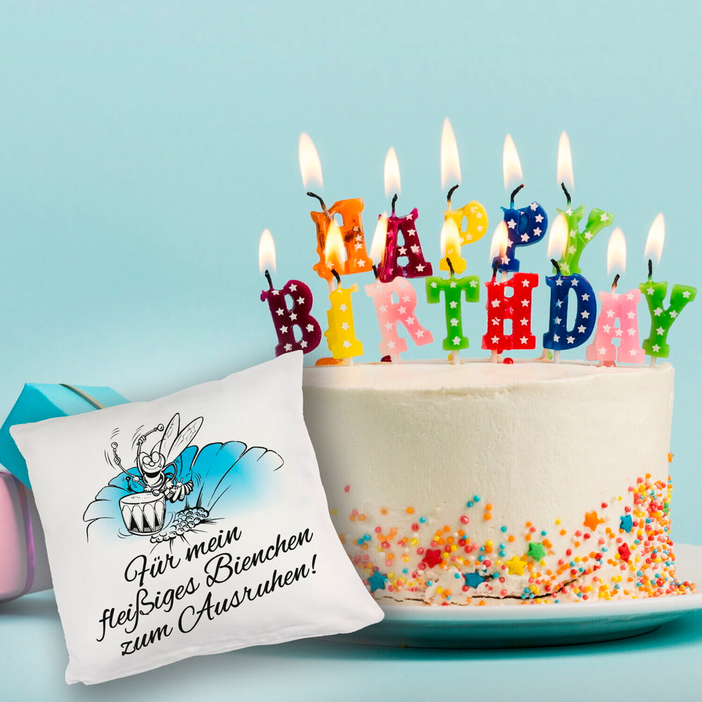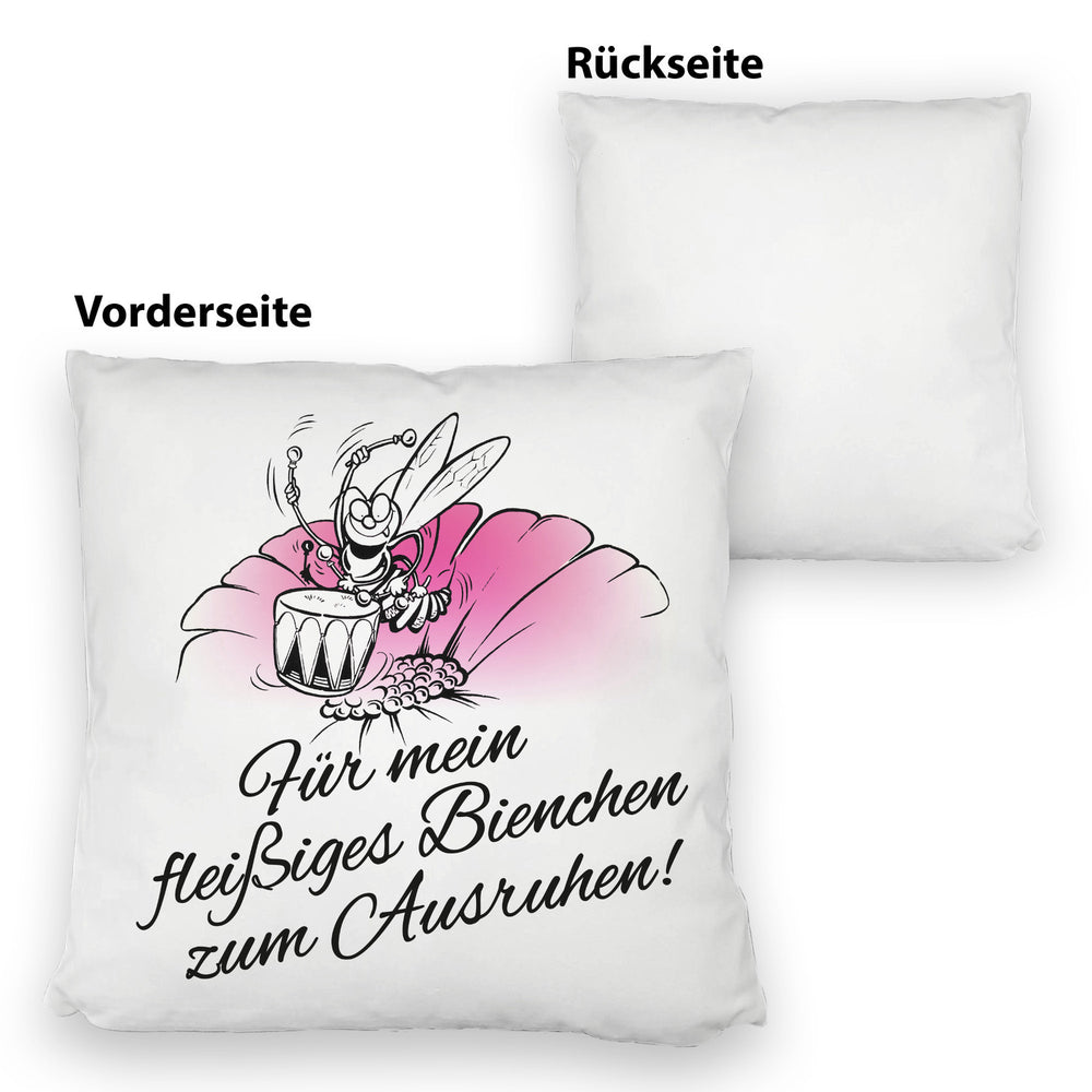 • 1x Kissen mit Bienen Motiv mit Spruch mein fleißiges Bienchen in der gewählten Ausführung