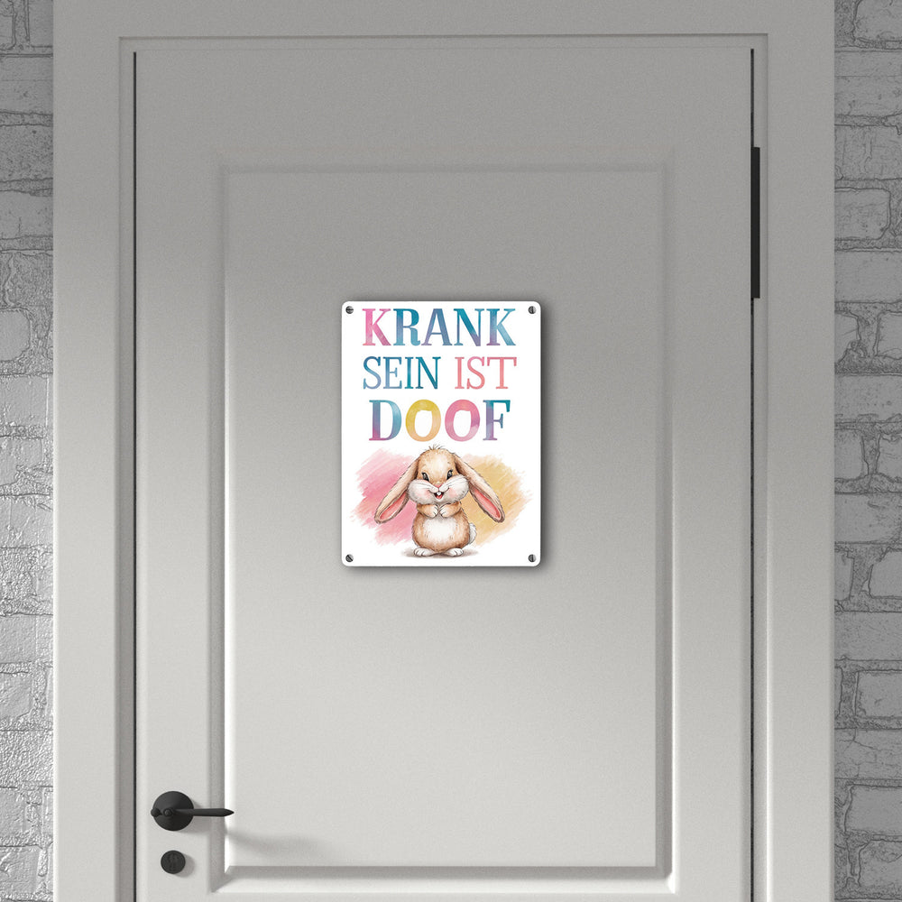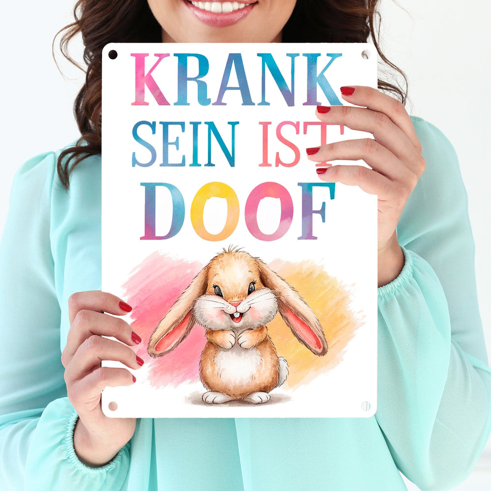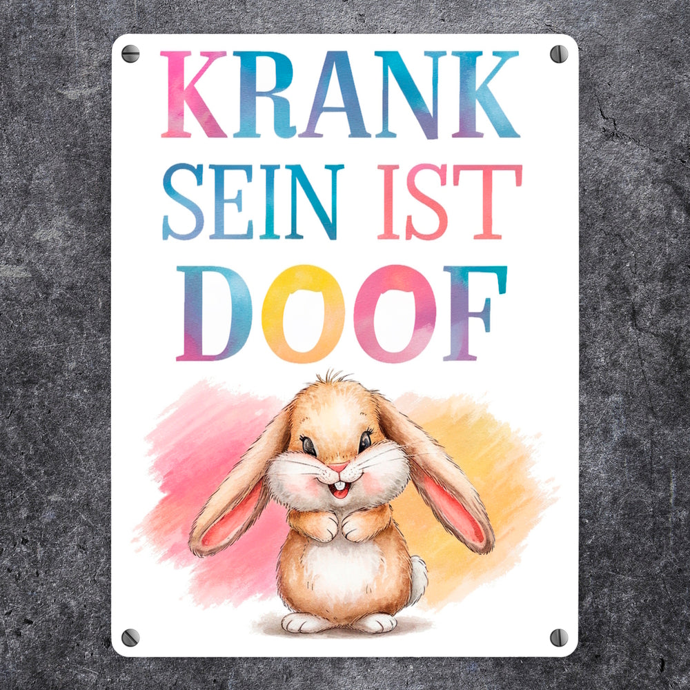 Krank sein ist doof Metallschild in 15x20 cm mit niedlichem Kaninchen