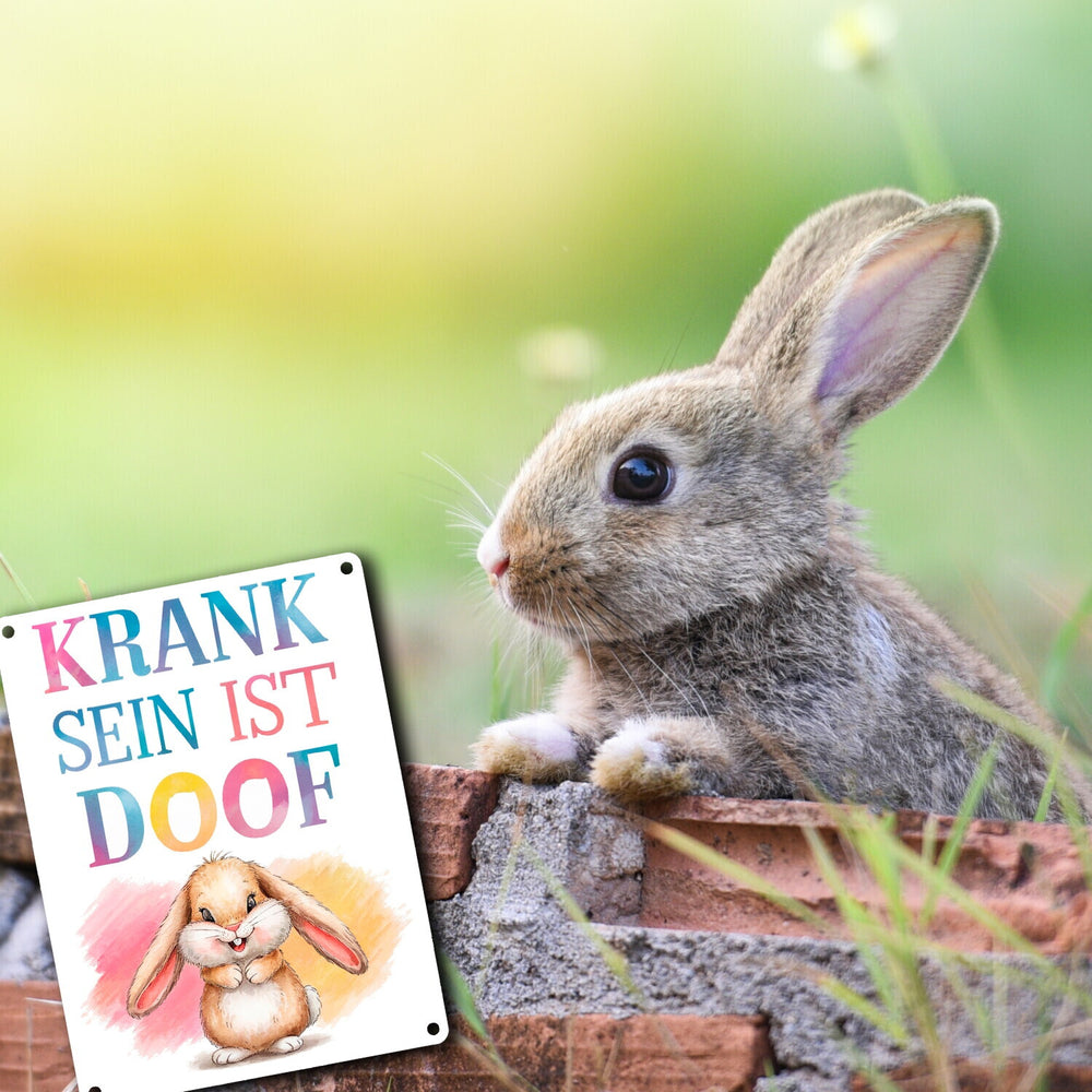 - 1x Krank sein ist doof Metallschild in 15x20 cm mit niedlichem Kaninchen in der gewählten Größe