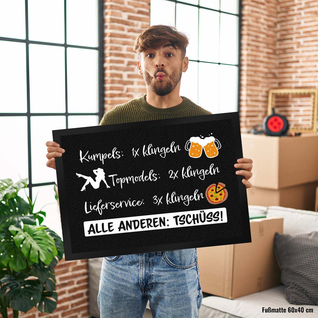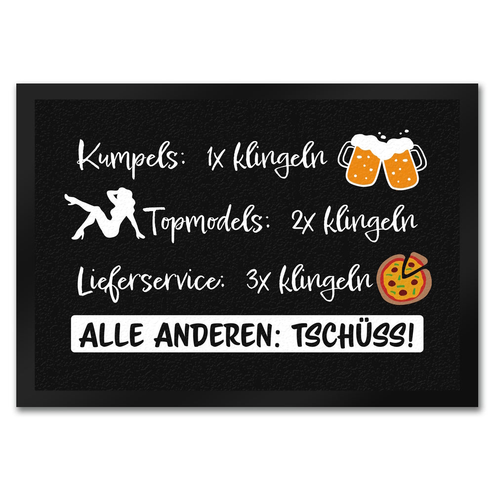 - 1x Kumpels, Topmodels, Lieferservice Klingel Fußmatte für die Männerhöhle in der gewählten Größe