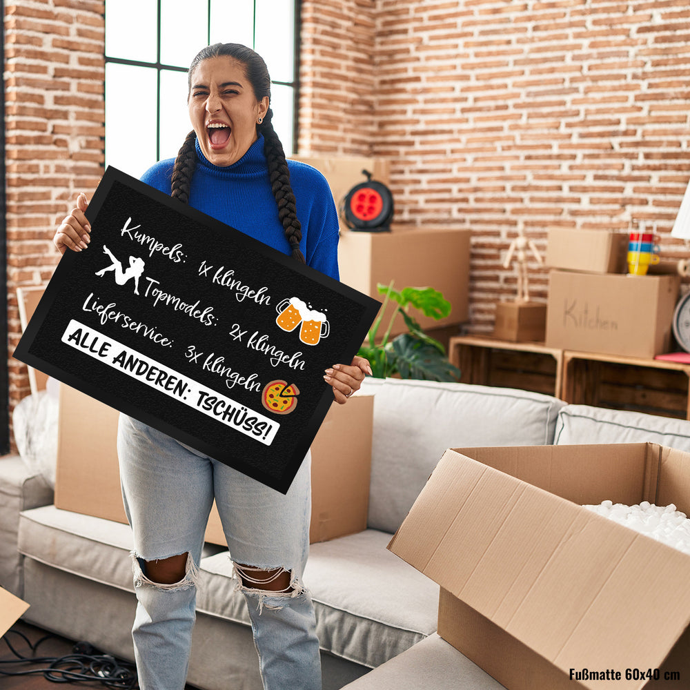 Kumpels, Topmodels, Lieferservice Klingel Fußmatte für die Männerhöhle