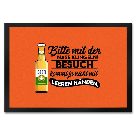 Bitte mit der Nase klingeln Fußmatte in 35x50 cm in orange mit Spruch und Biermotiv