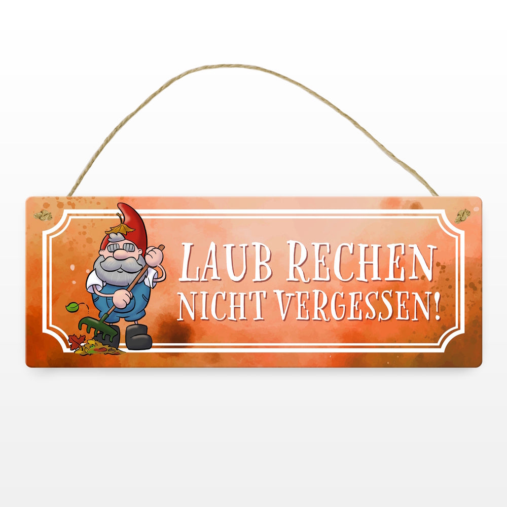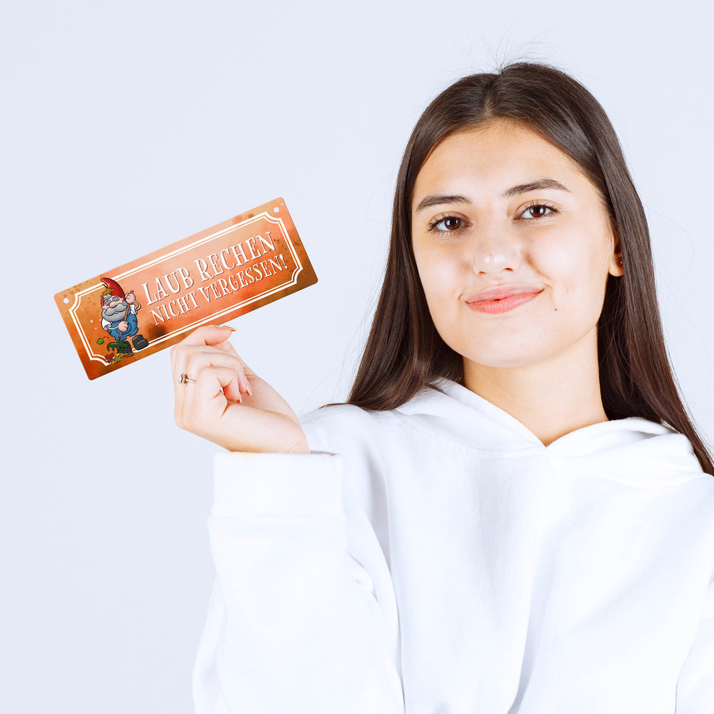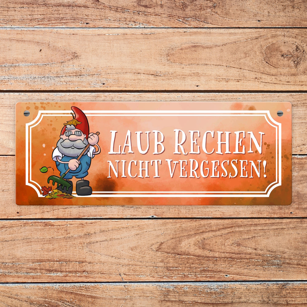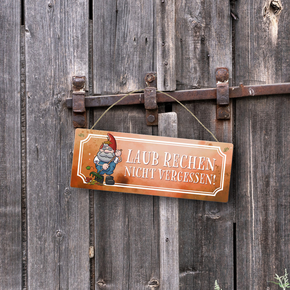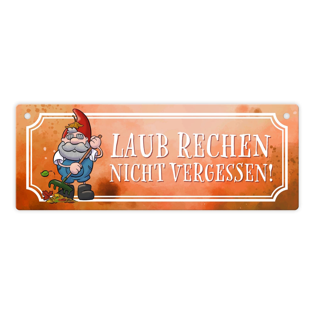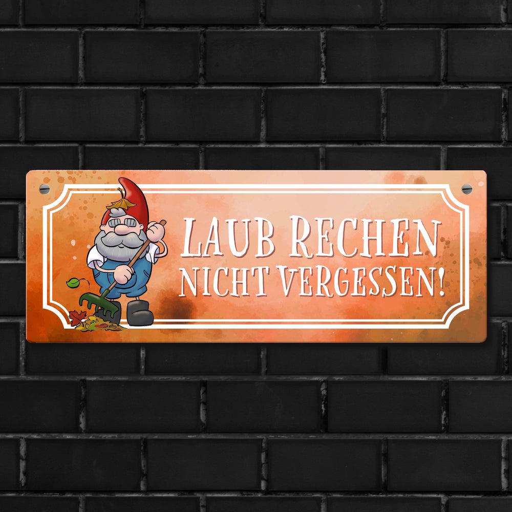 Laub rechen nicht vergessen Metallschild mit Gartenzwerg