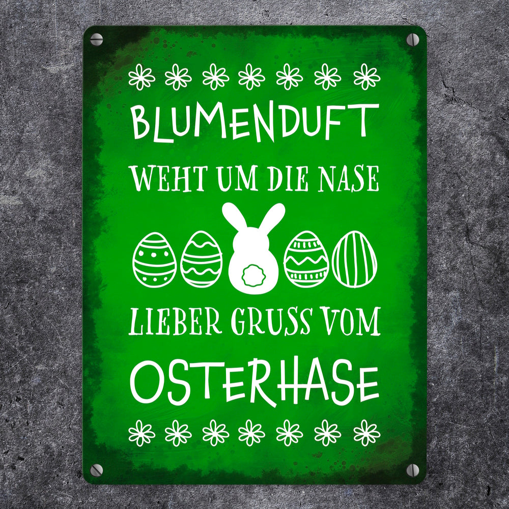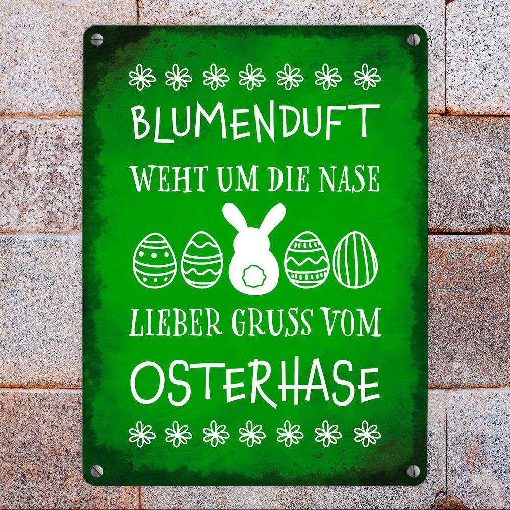 Liebe Grüße vom Osterhasen! Metallschild mit Spruch