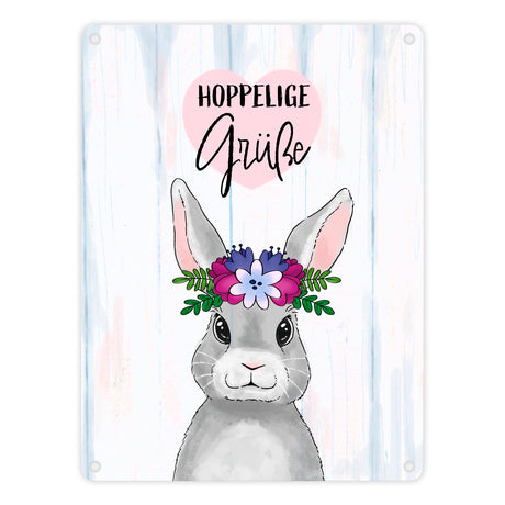 Hoppelige Grüße Metallschild mit süßem Osterhasen