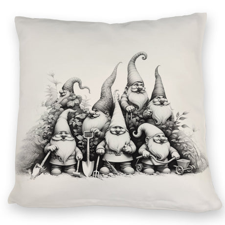 Freche Gartenzwerge mit kleinem Haus Kissen
