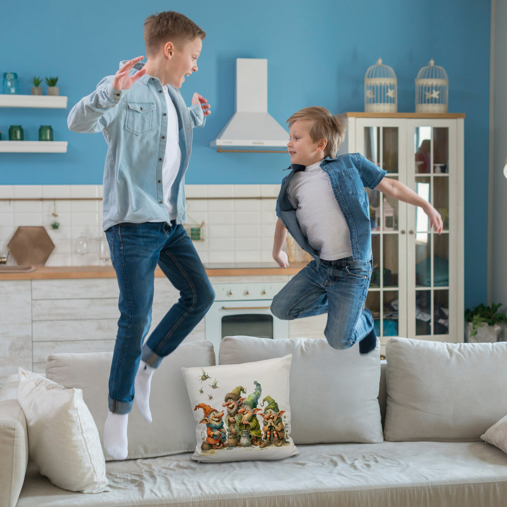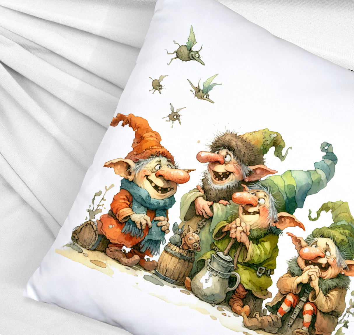 - Bringen Sie Charme und Schelmerei in Ihr Wohnzimmer mit dem "lustige Kobolde Kissen"! Ein Kissen, das nicht nur weich ist, sondern auch vor Humor strotzt. Mit Fantasievolle Kobold-Motiven, die beim Schabernack treiben abgebildet sind, zaubert es garantiert ein Grinsen auf jedes Gesicht.