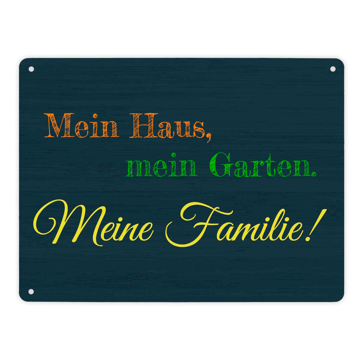 Mein Haus, mein Garten. Meine Familie Metallschild in 15x20 cm mit Spruch - 15x20 cm ist auf Lager und wird versandt, sobald es wieder verfügbar ist