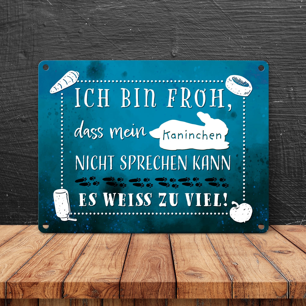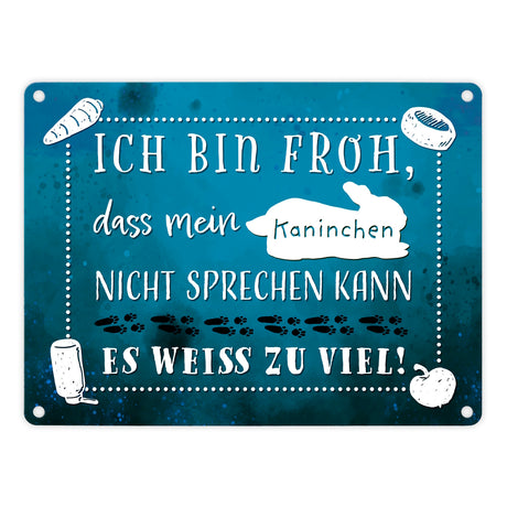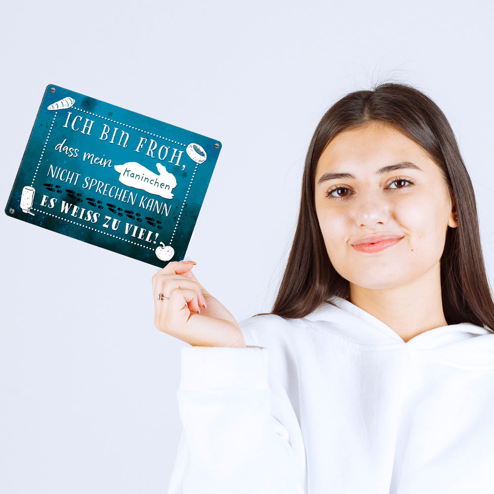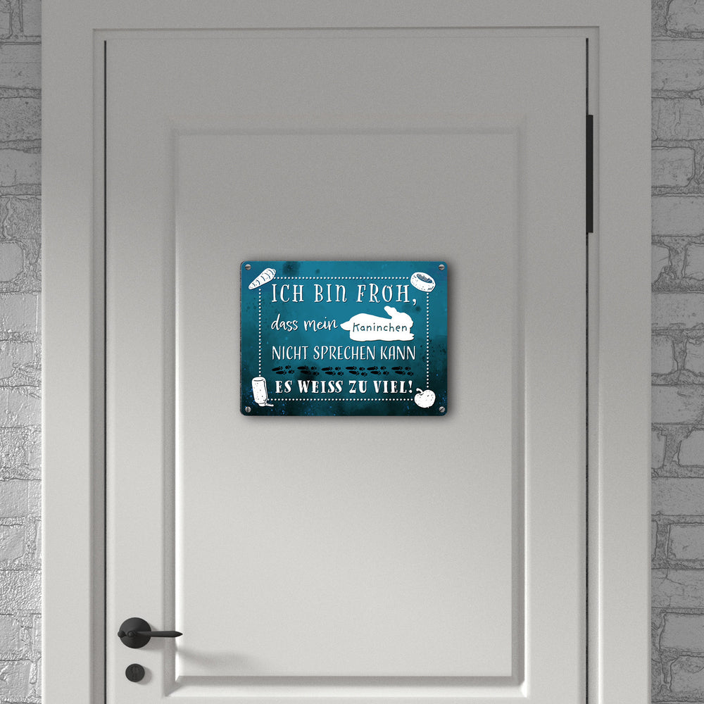 Mein Kaninchen weiß zu viel Metallschild mit lustigem Spruch