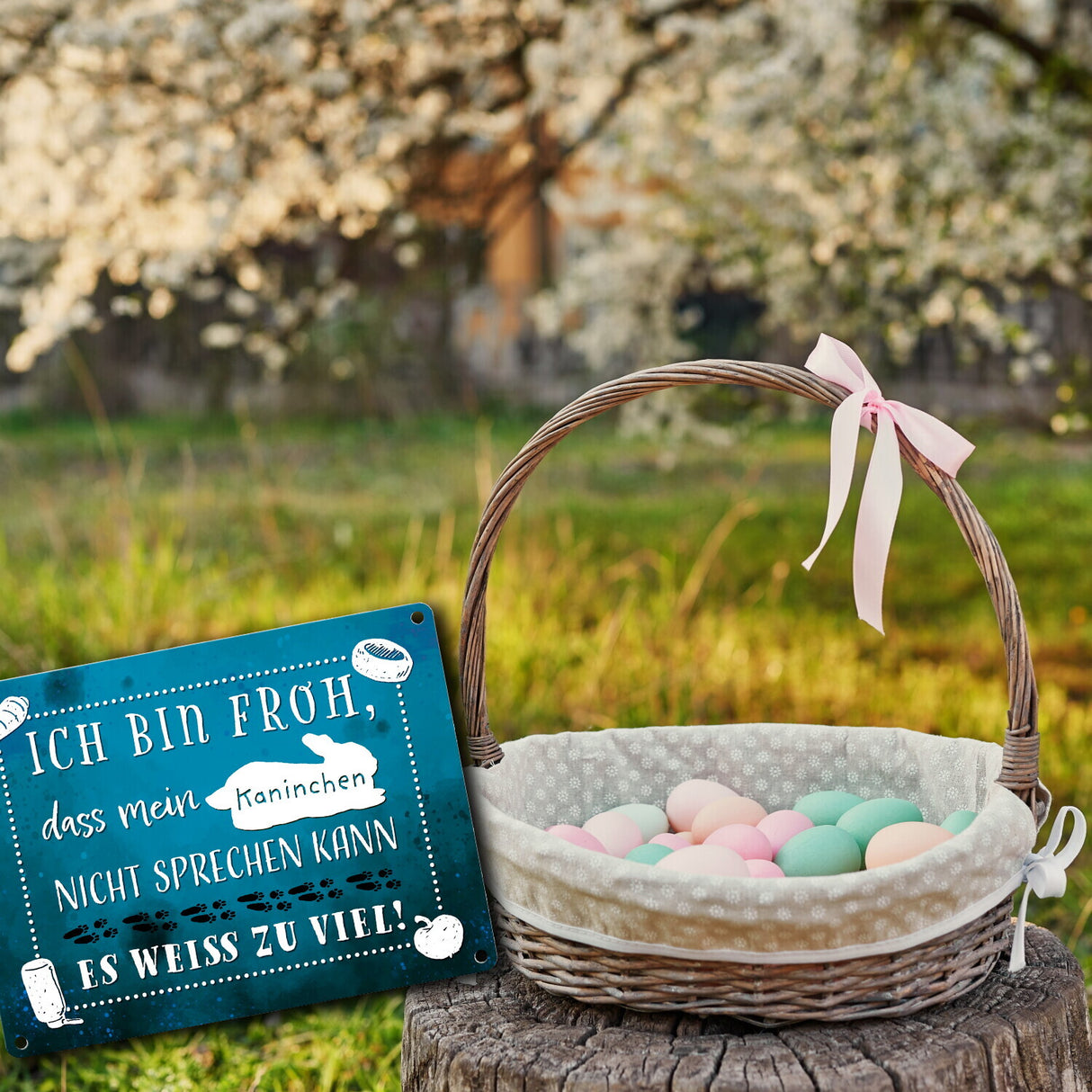 • Das Schild ist mit seinem lustigen Spruch eine hübsche Dekoration für jeden Kaninchenhaushalt. Verschenke das Schild an Kaninchenbesitzer, Freunde, Familie und Bekannte zum Geburtstag, zu Weihnachten, zu Ostern oder einem anderen Anlass.