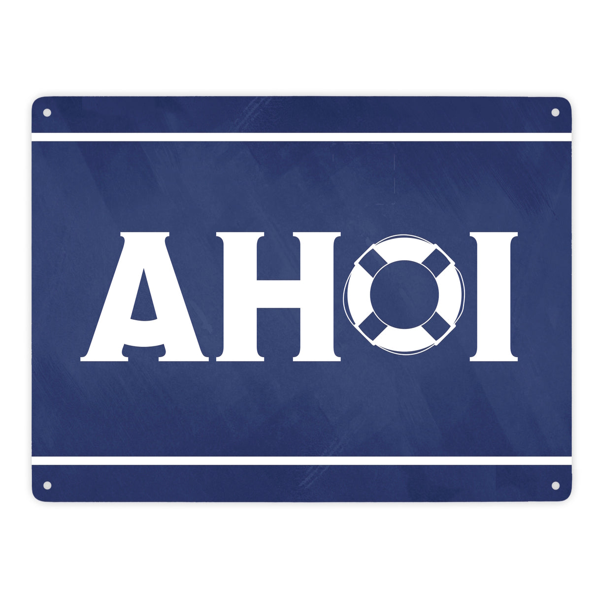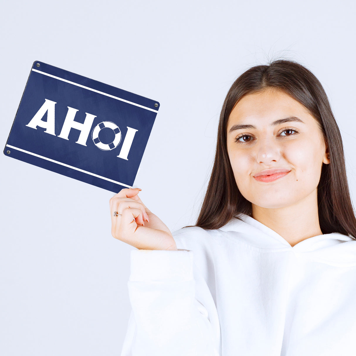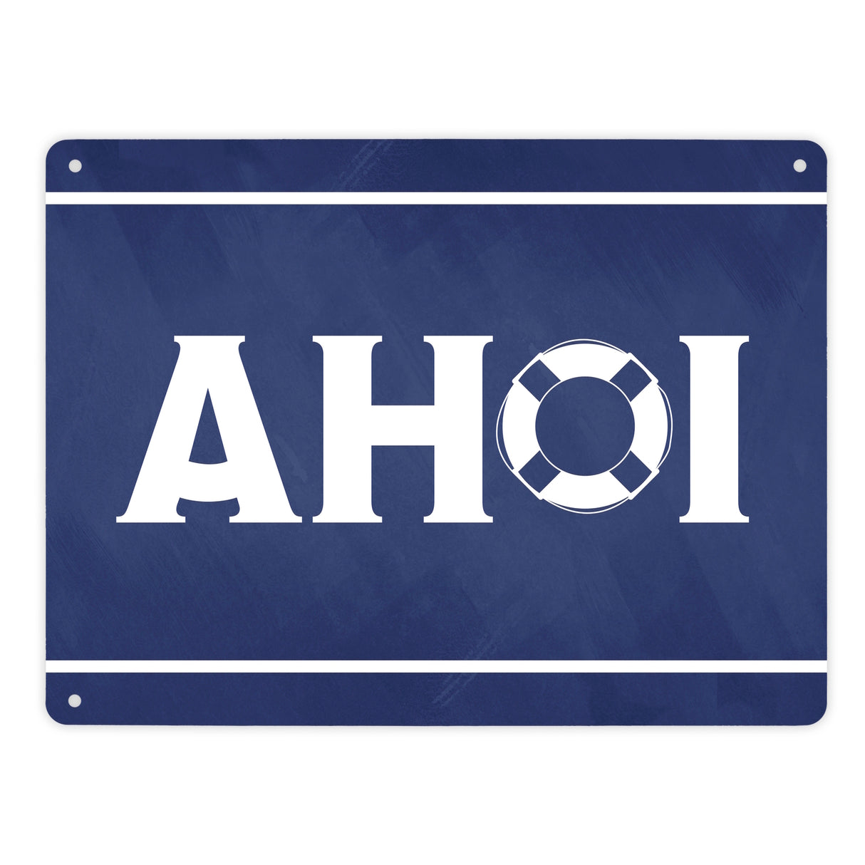 - 1x Metallschild Ahoi - mit Maritim Rettungsring Motiv in der gewählten Größe