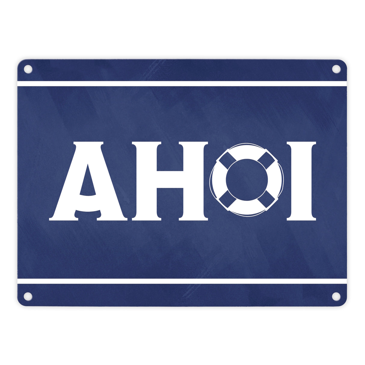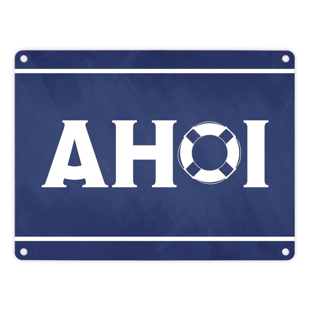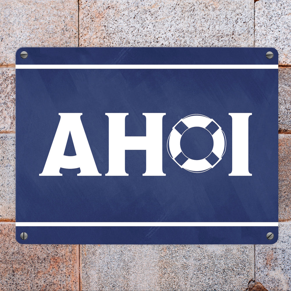 Metallschild Ahoi - mit Maritim Rettungsring Motiv
