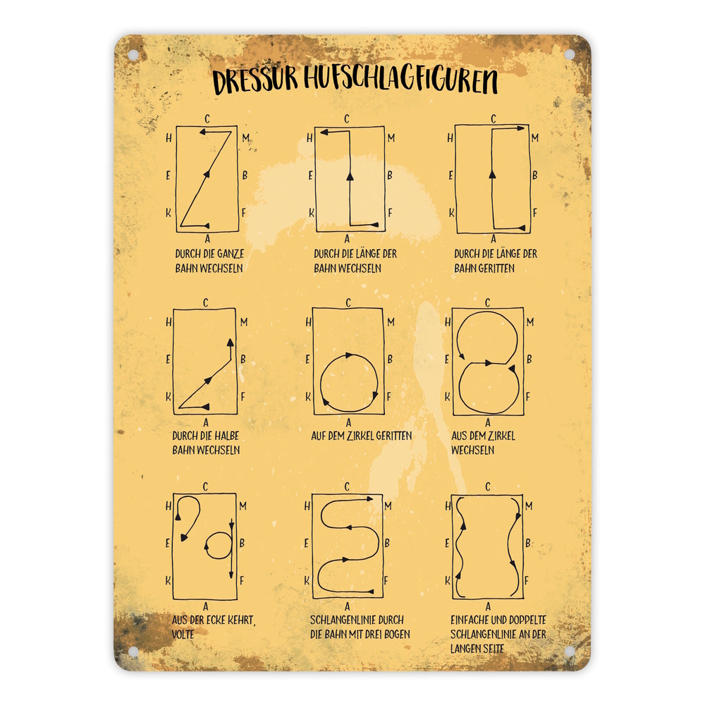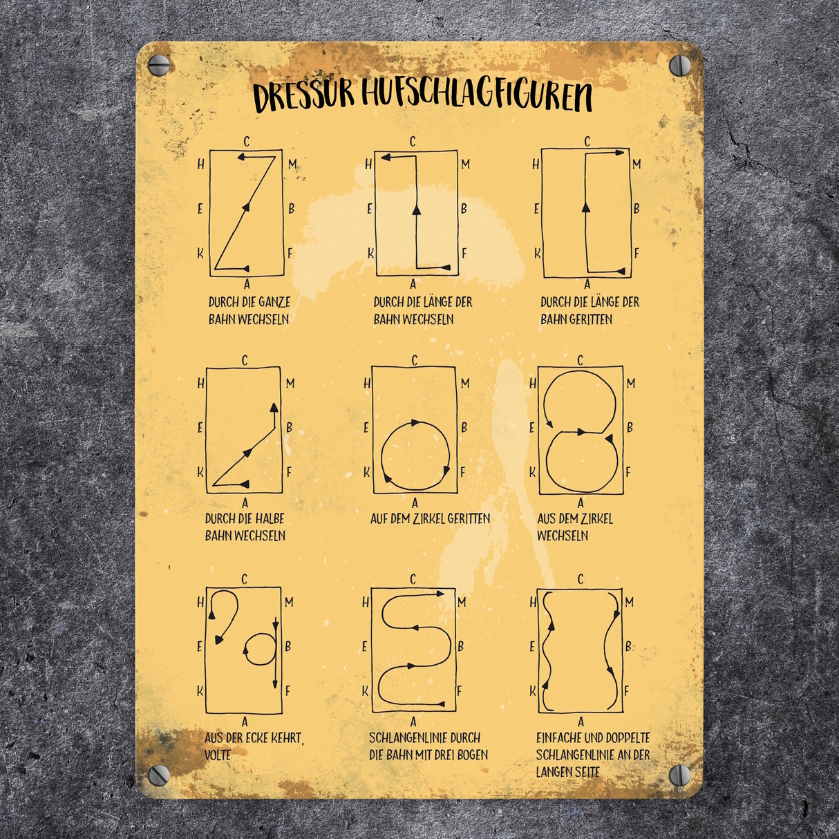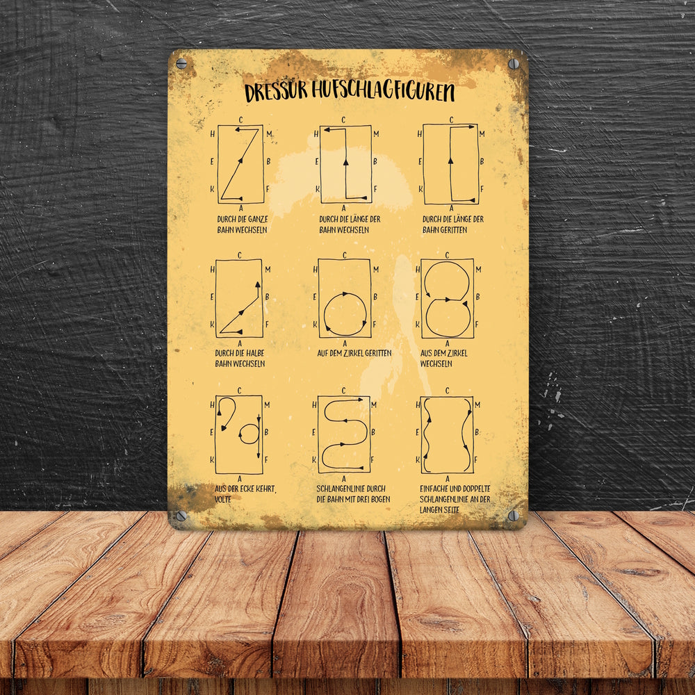 - 1x Metallschild mit Dressurreiten Hufschlagfiguren Motiv in der gewählten Größe