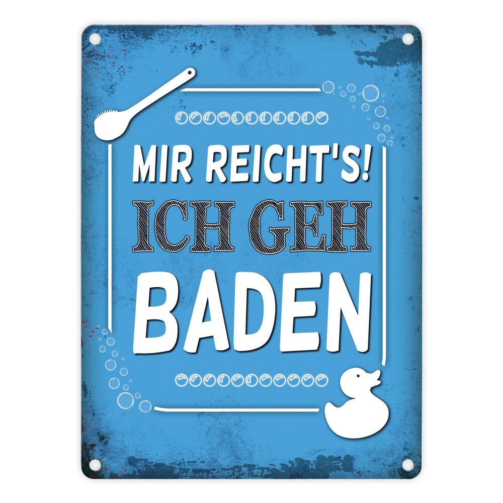 - 1x Metallschild mit Spruch: Mir reicht's! Ich geh baden in der gewählten Größe