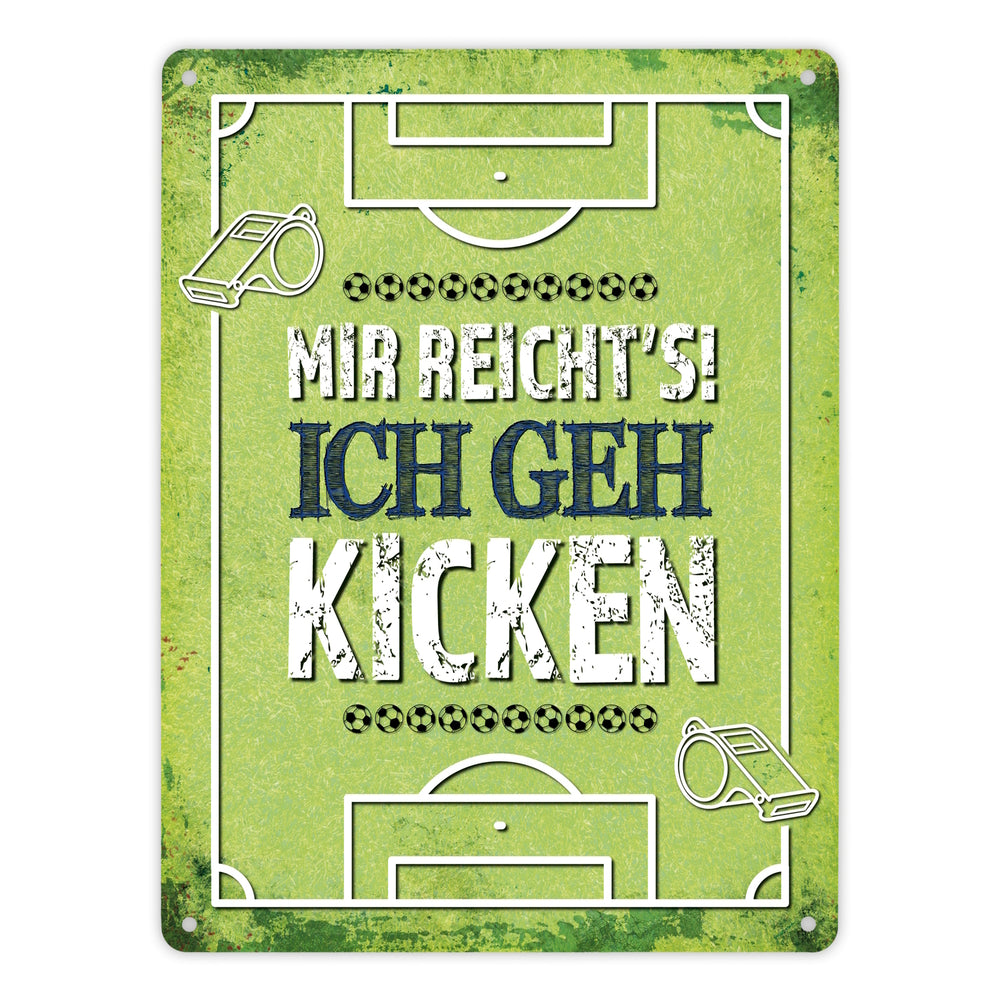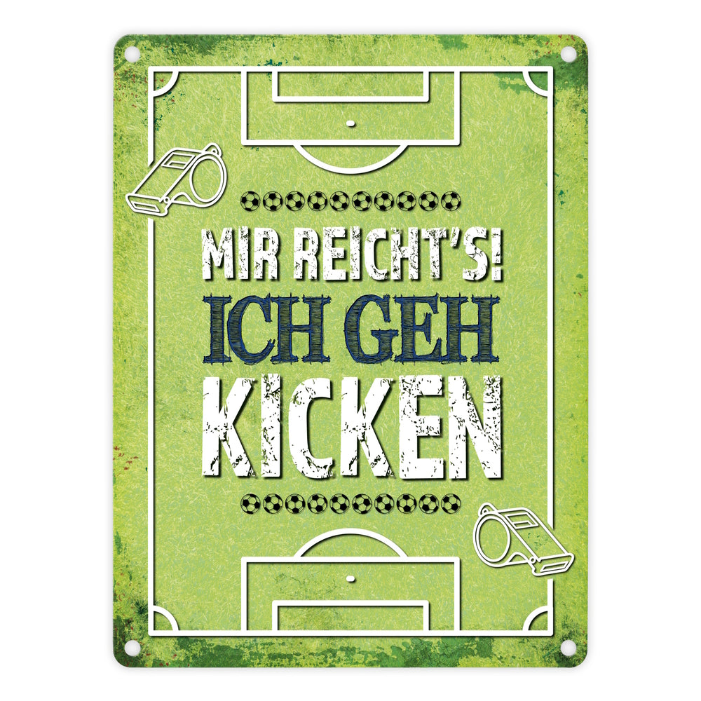 Metallschild mit Spruch: Mir reicht's! Ich geh kicken
