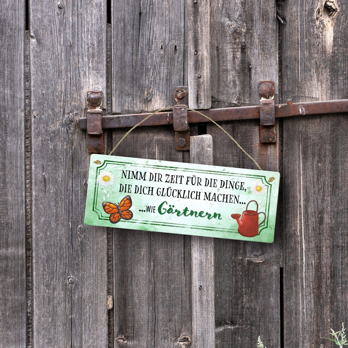 - 1x Metallschild mit Spruch - Nimm dir Zeit zu Gärtnern in der gewählten Größe