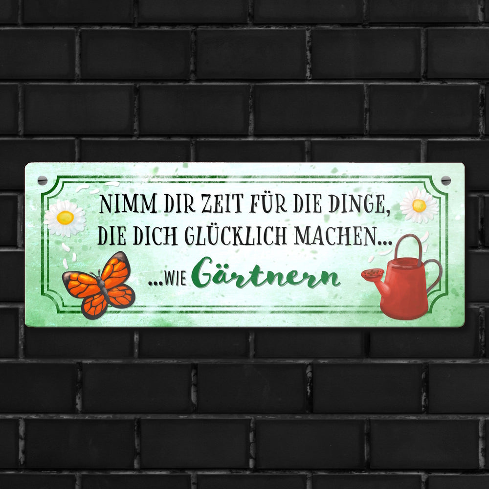 Metallschild mit Spruch - Nimm dir Zeit zu Gärtnern
