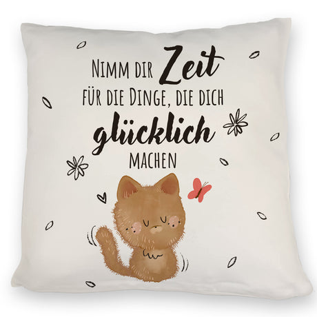 Katze Kissen mit Spruch Zeit für dein Glück nehmen
