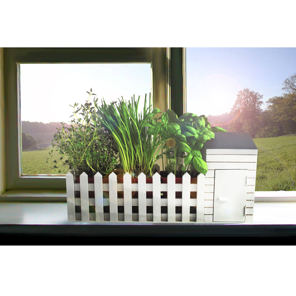 - Mini Kräutergarten Haus mit Koriander, Oregano und Basilikum Samen, Erde, Schere und Töpfender Garten für die Fensterbank