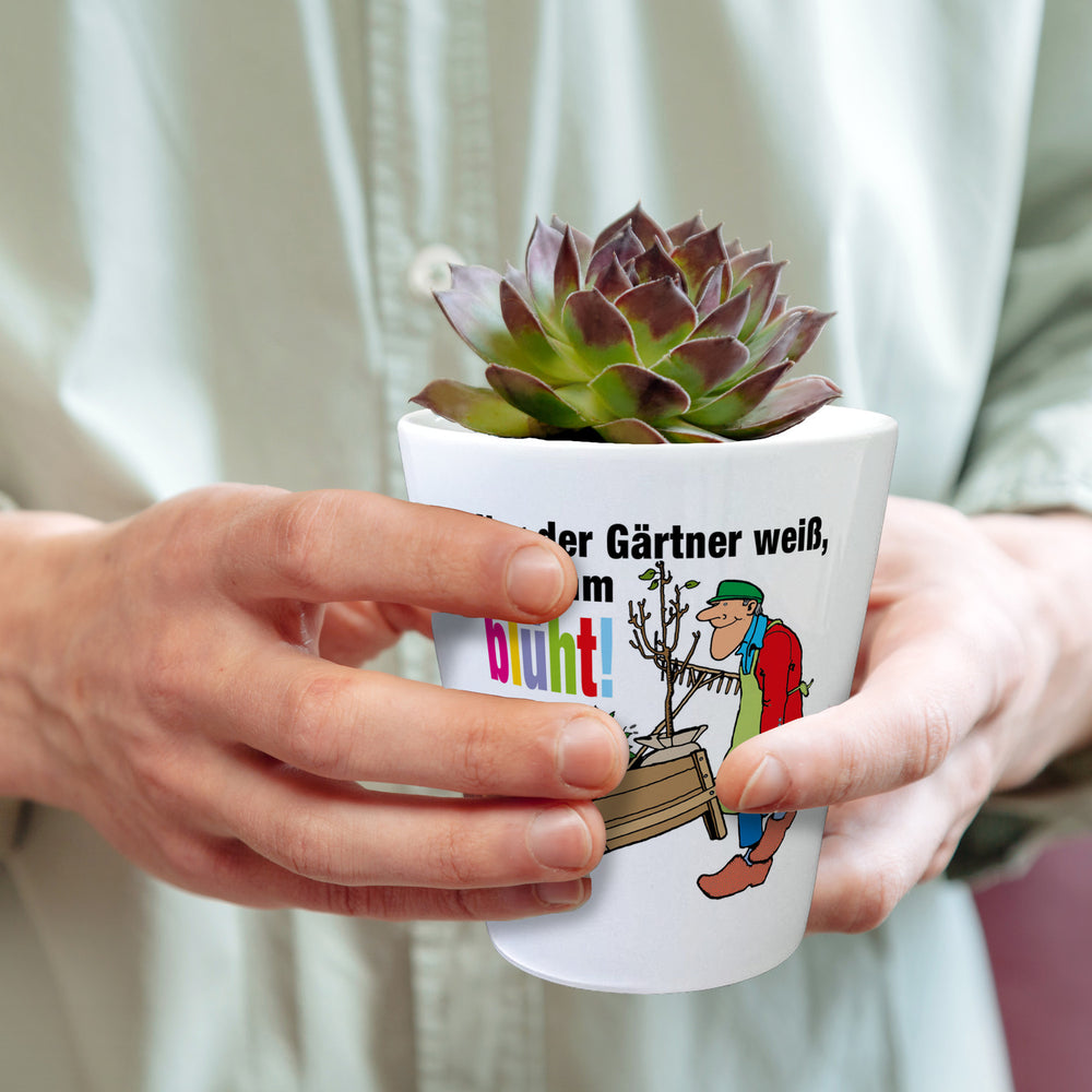 - Lieferumfang: 1x Nur der Gärtner weiß, was ihm blüht! Blumentopf
