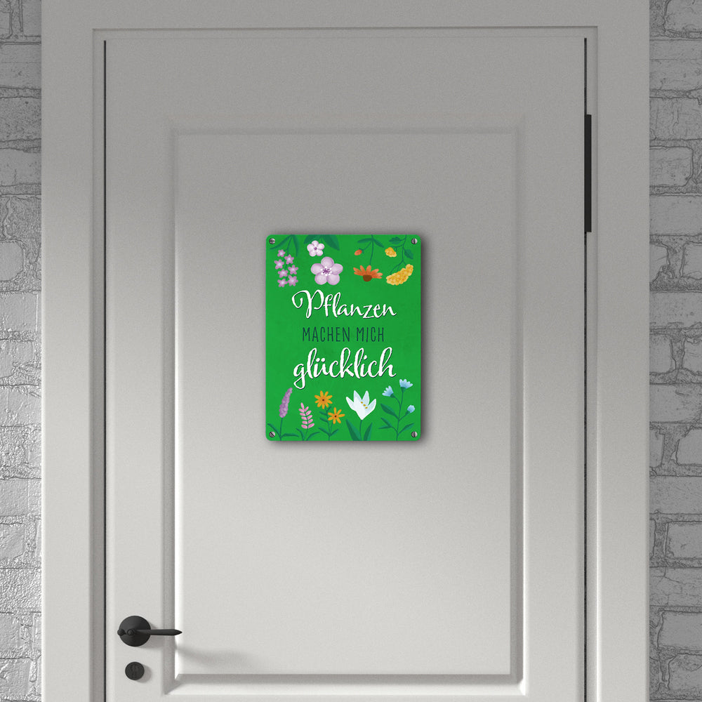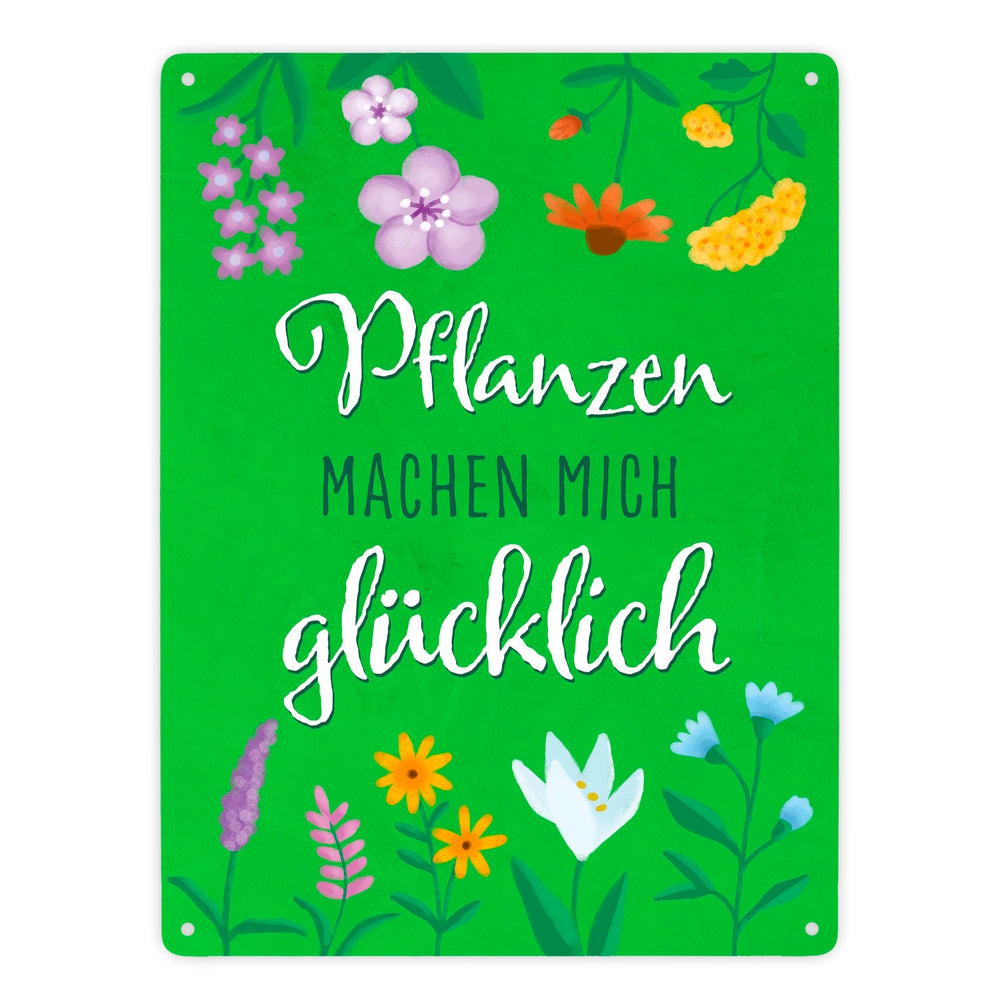 - 1x Pflanzen machen mich glücklich Metallschild für Gartenfreunde in der gewählten Größe