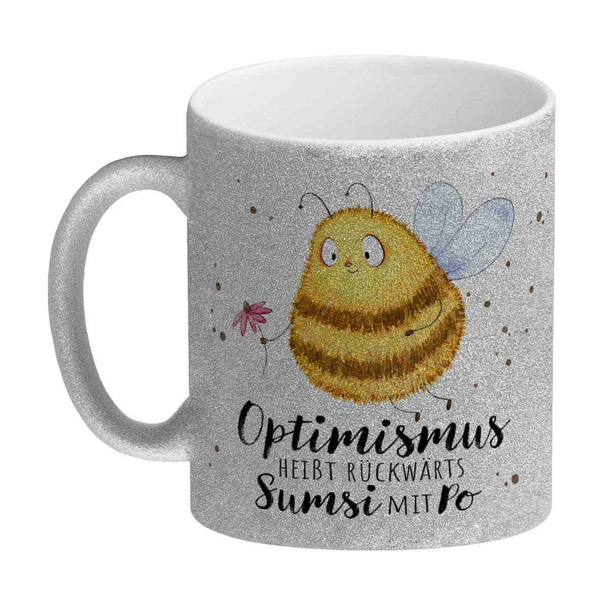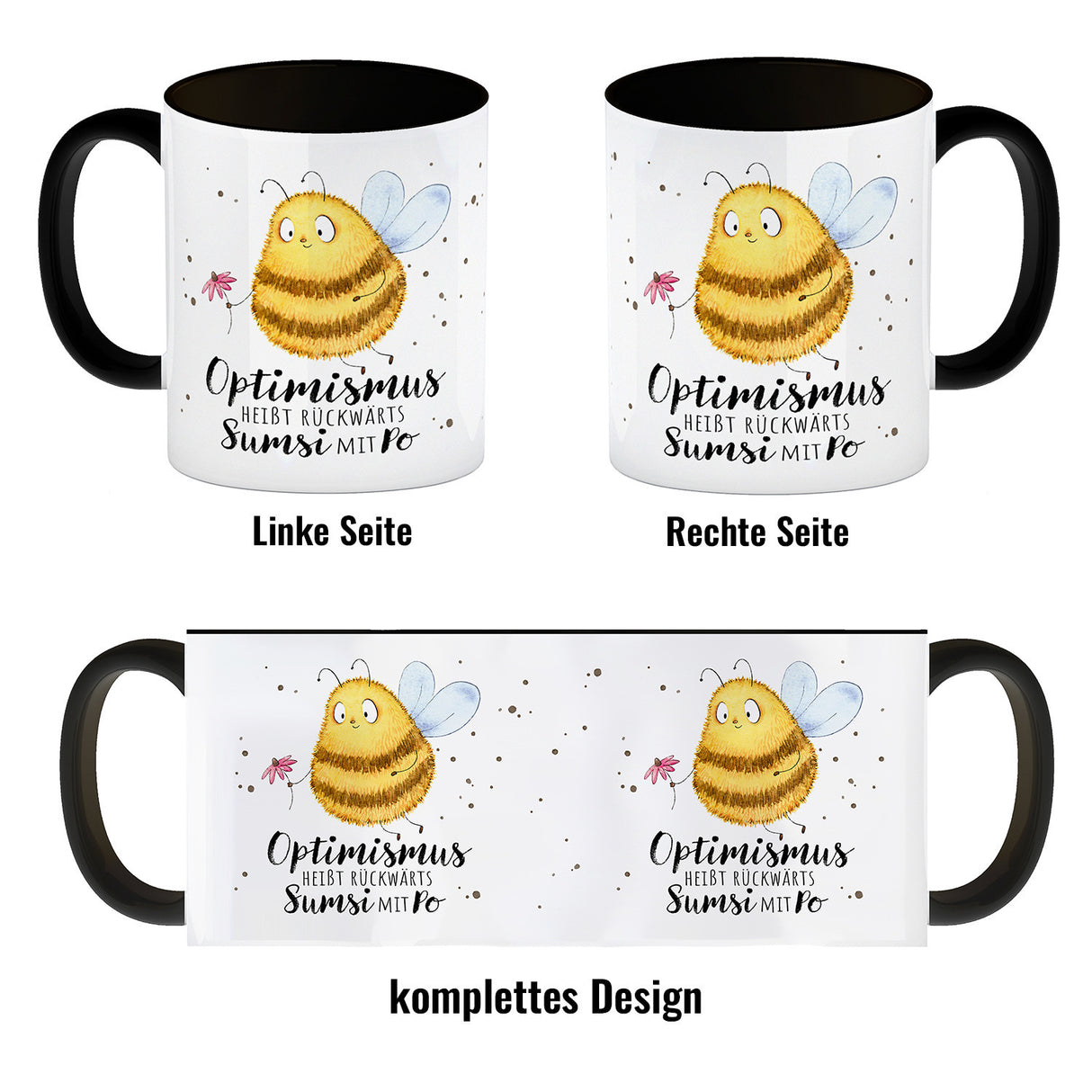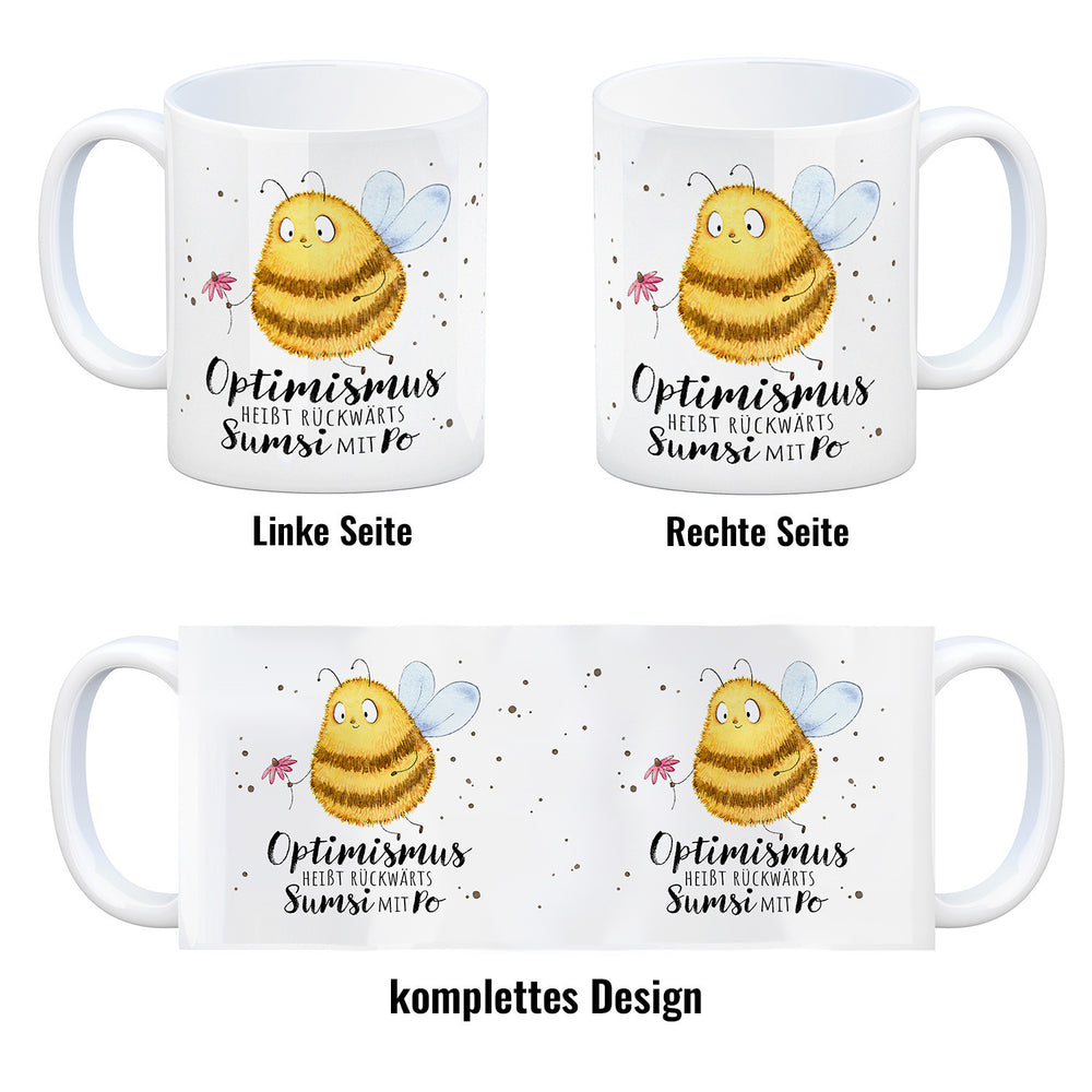 Optimismus heißt rückwärts Sumsi mit Po Biene Kaffeebecher mit Spruch