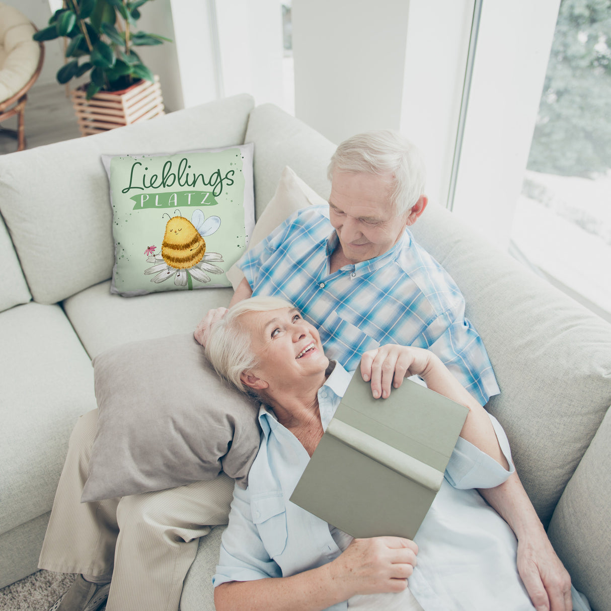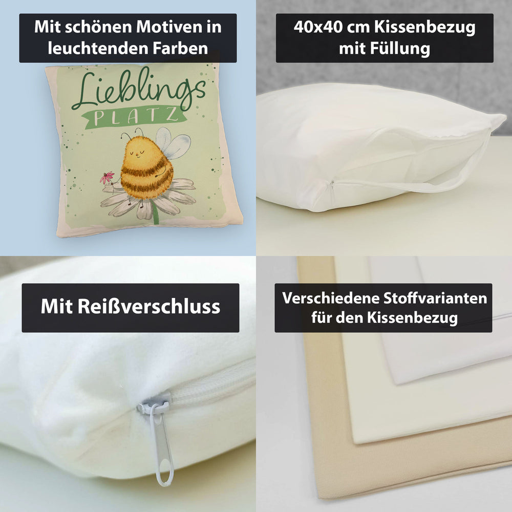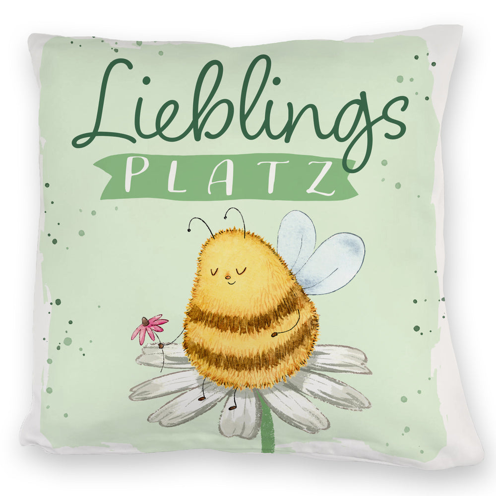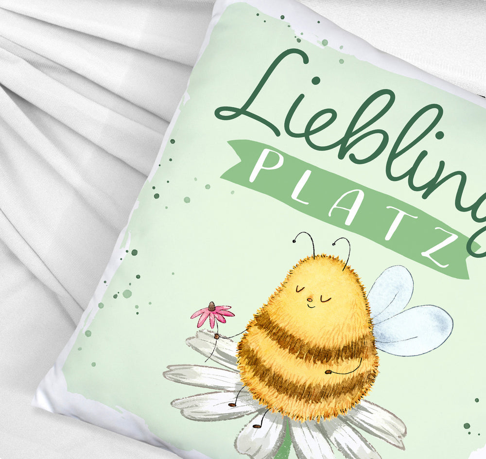 - Achtung: Dieses Kissen könnte dein Sofa für immer in Beschlag nehmen! Mit dem Spruch "Lieblingsplatz" lädt es zum Bleiben, Träumen und Summen ein. Ein Geschenk, das sagt: "Bleib so pummelig-süß wie unsere Biene – und immer schön aufblühen!"