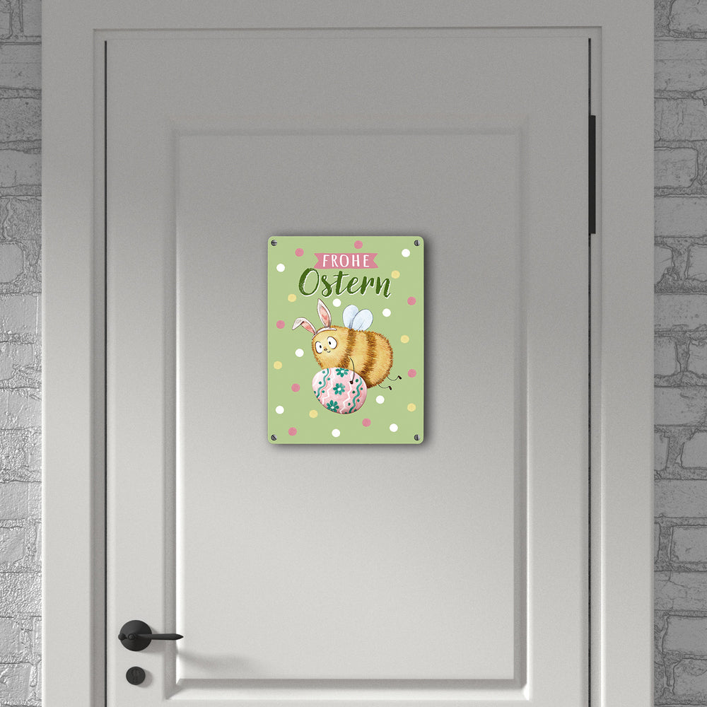 Pummel Biene Metallschild in 15x20 cm mit Spruch Frohe Ostern