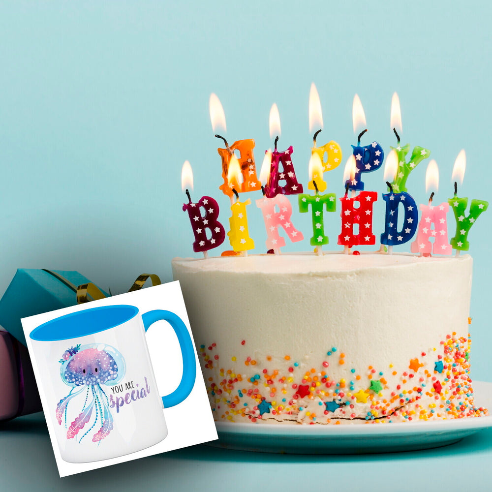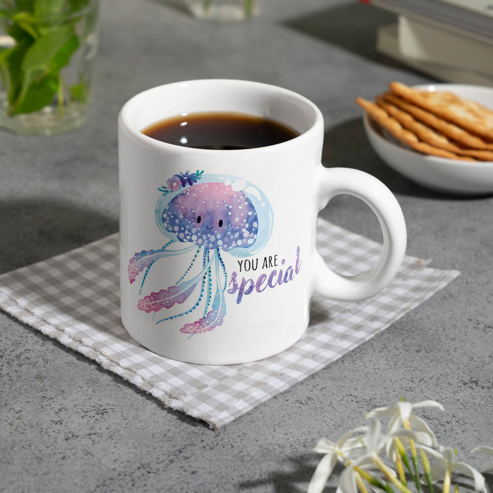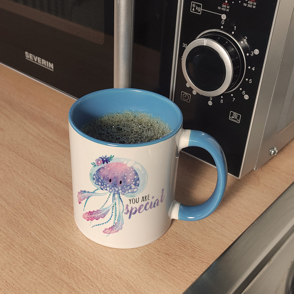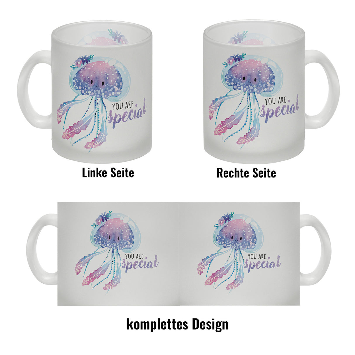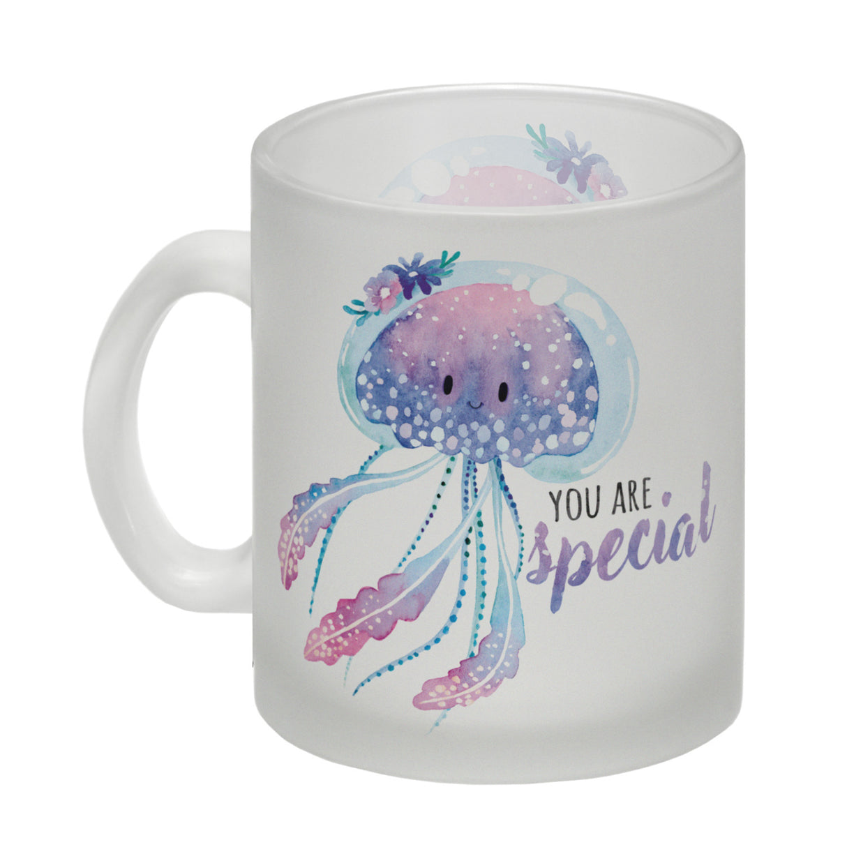 • 1x Qualle Kaffeebecher mit Spruch You are special in der gewählten Ausführung