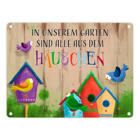 In unserem Garten sind alle aus dem Häuschen Metallschild
